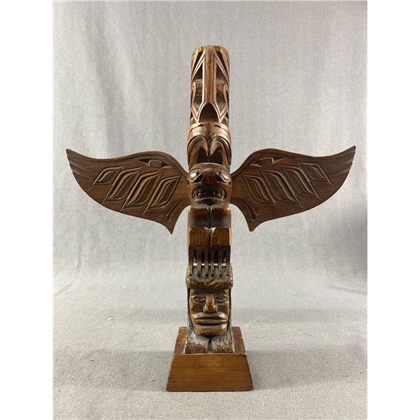 First Nations Wood Carved "Thunderbird Warrior" Vancouver BC Signed Approx 13 1/2"