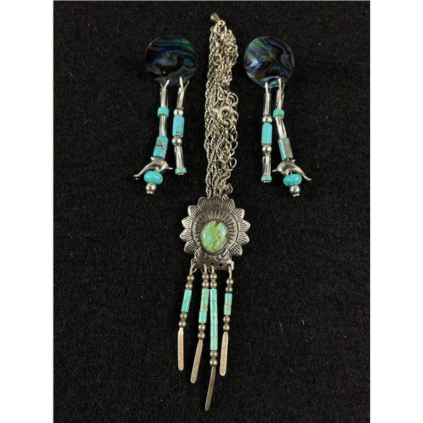 Vintage Pair of Native American w/ Turqouise Earrings and Necklace