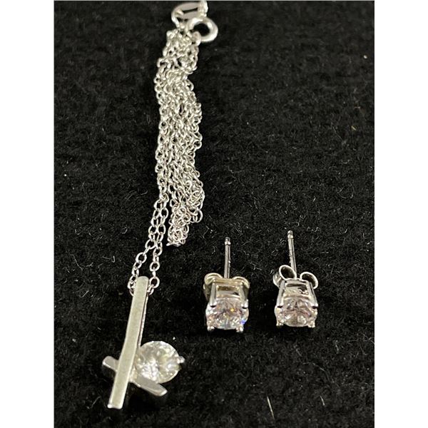 Lovely Sterling Silver Pendant Necklace and Pair of Sterling Silver Stud Earrings