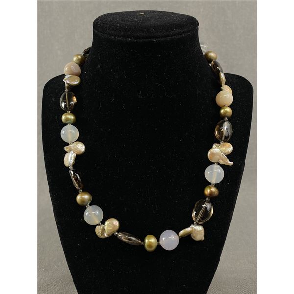 Genuine Pearls and Genuine Gem Beads Necklace Very Unique
