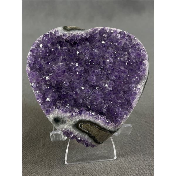 Shimmering Amethyst Druzy Geode Heart Crystal Carving from Uruguay ~ Includes Stand