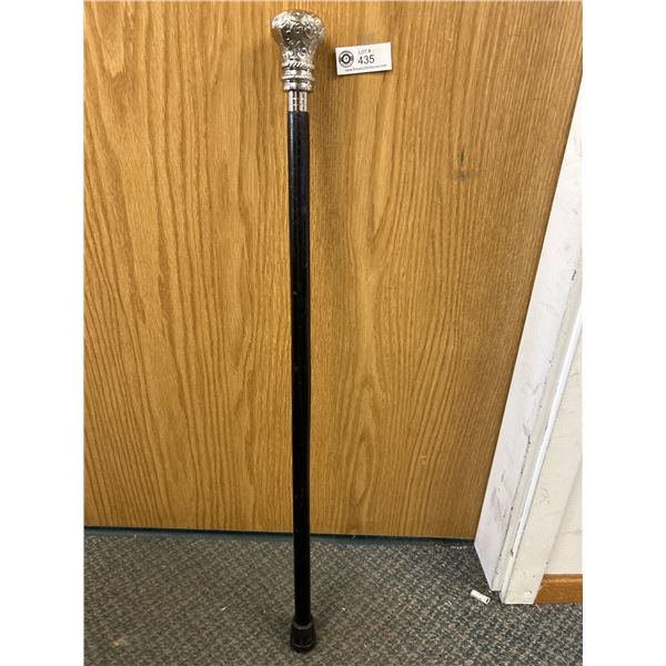 Vintage 31.5" Wood Painted Black Cane w/ Ornate Metal Tip