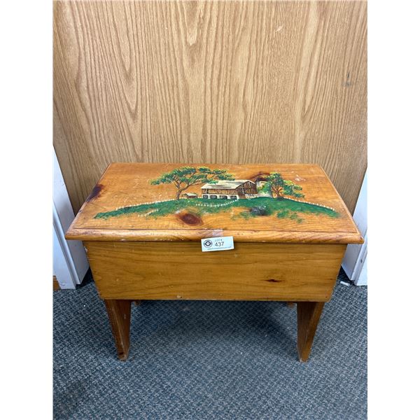 Beautiful Hand Painted Cedar Wood Storage Bench East Coast Canada. Folk Art. Signed Debbie McComb Ferrier . NO SHIPPING. Approx. 18.5"H x 22&qu...