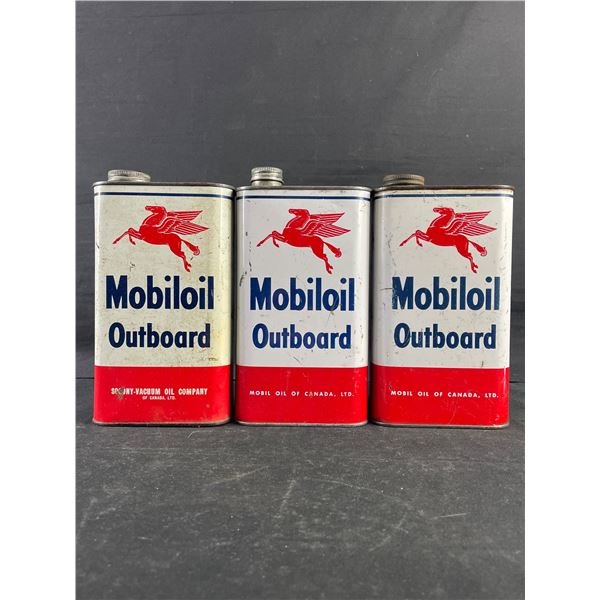 3 Vintage "Mobiloil" Outboard One Quart Oil Tins. (Empty)