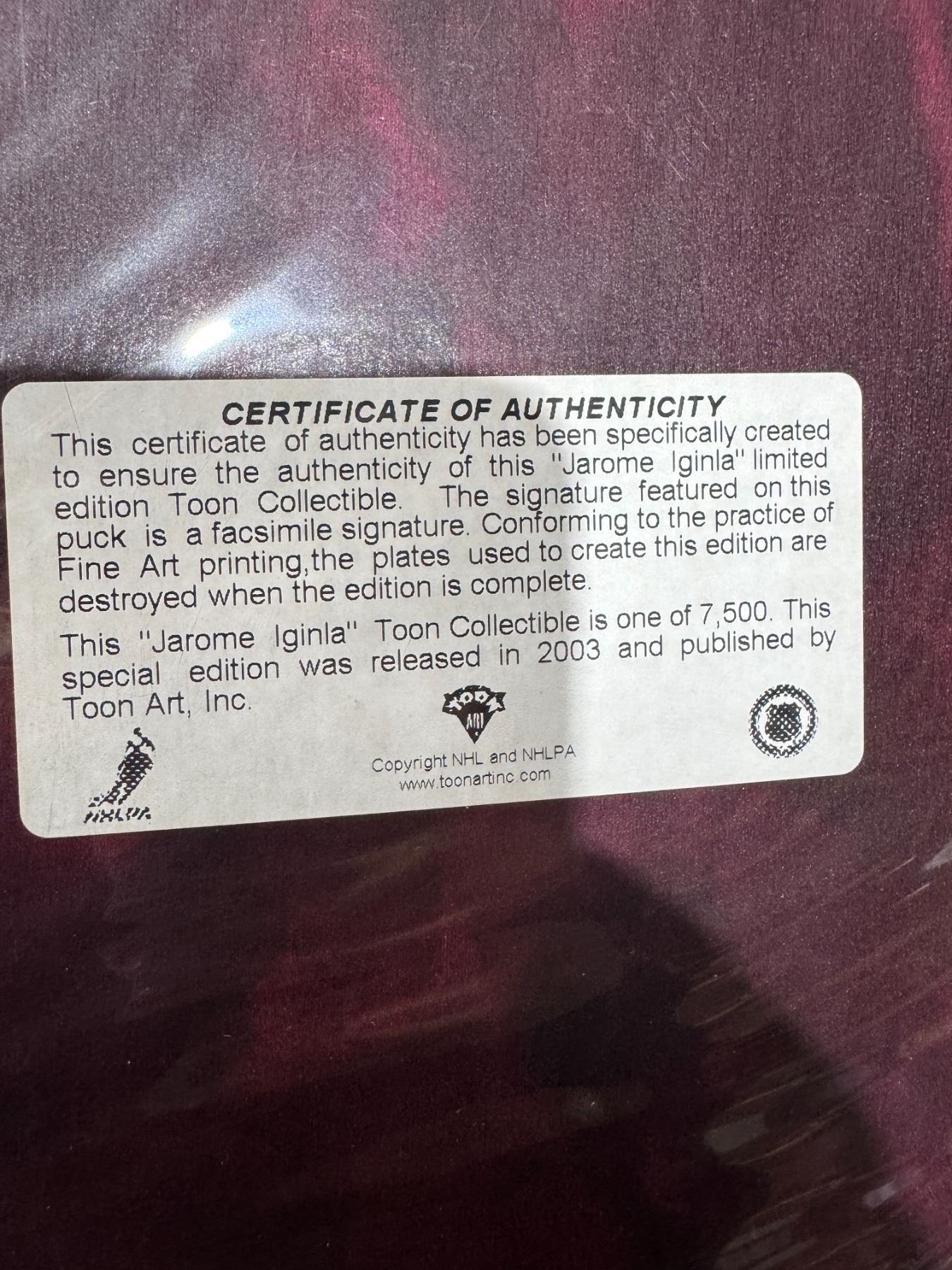 Jarome Iginla what certificate of authenticity