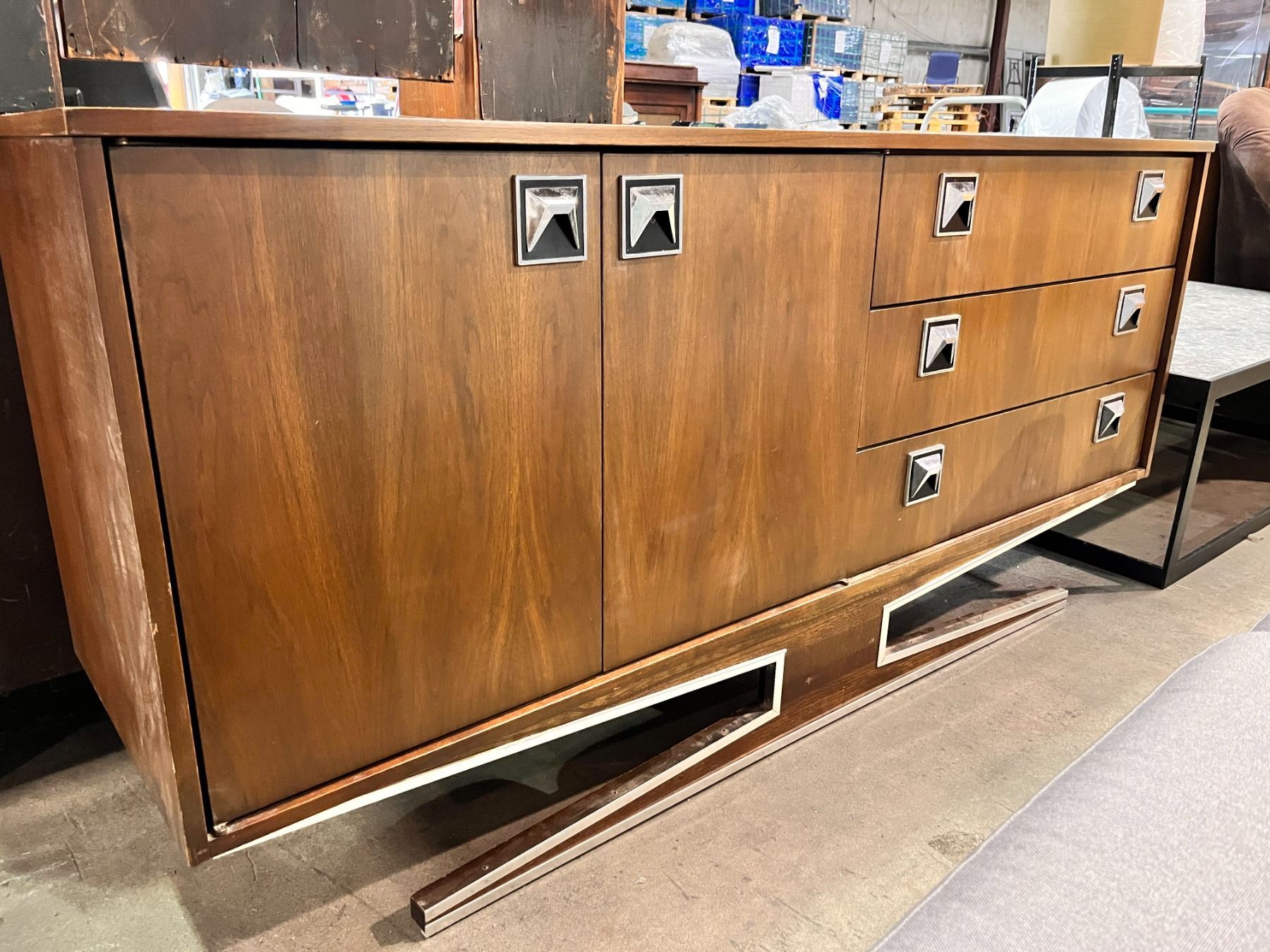 Jetson style walnut sideboard (approx. 66in W 18in D 31in H)