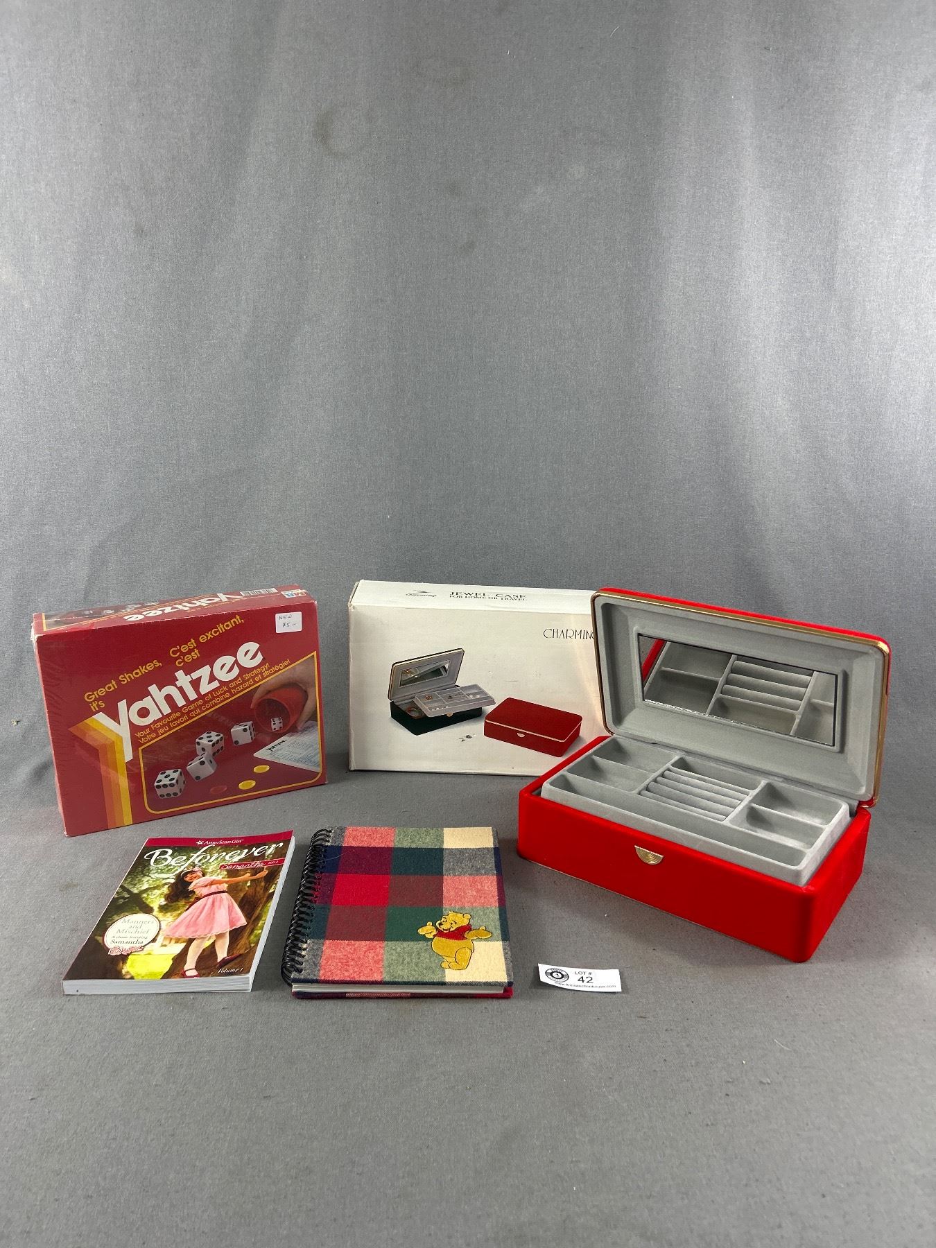 Jewelry Case with Box, Yatzee Game, American Girl Book and Winnie the Pooh Notebook