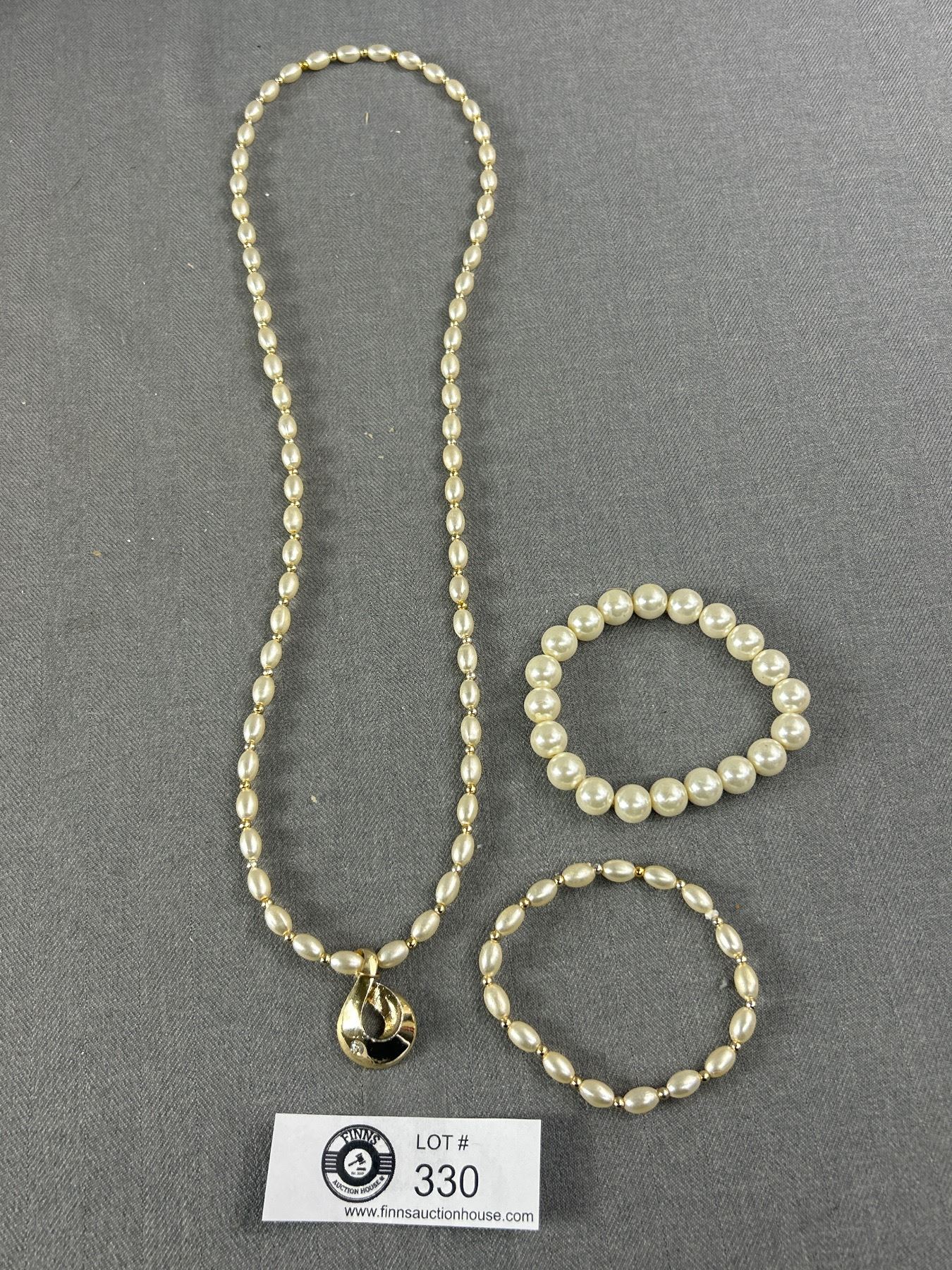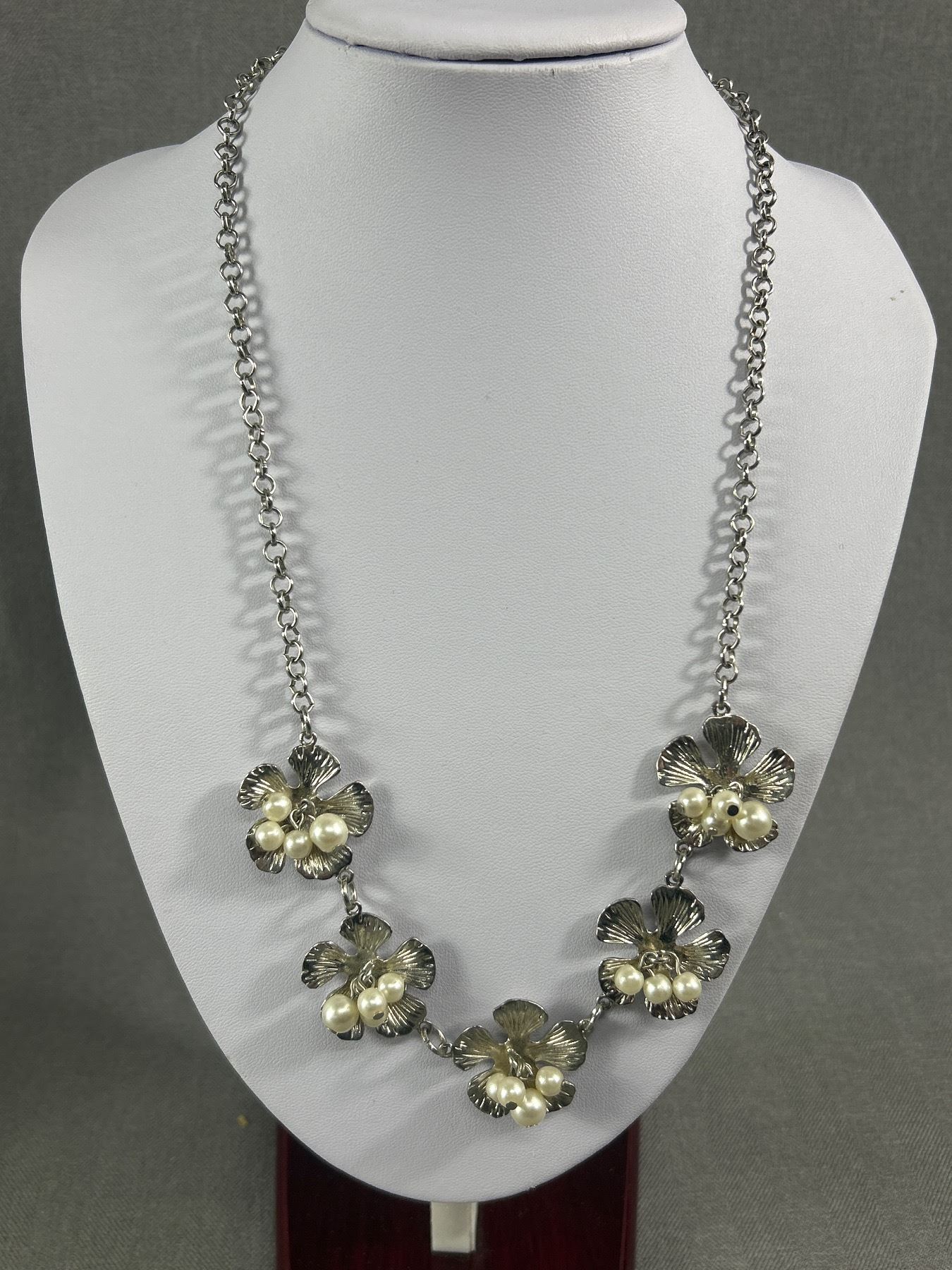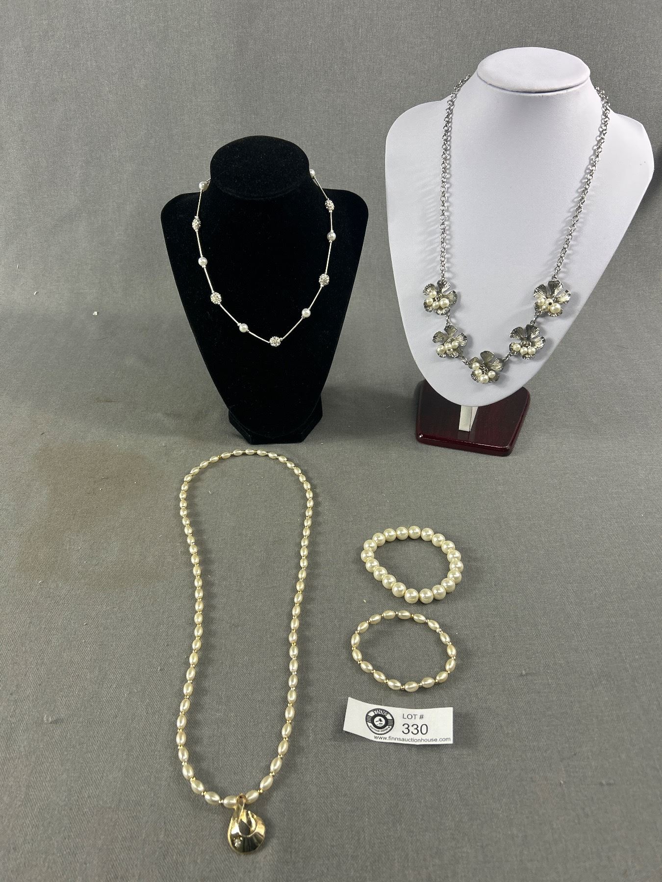 Joe Fresh 16" Choker Necklace, 22" Metal Flowers Necklace, Beaded Stretch Bracelet & 24" White/Gold Beaded Necklace w/ Matching Bracelet