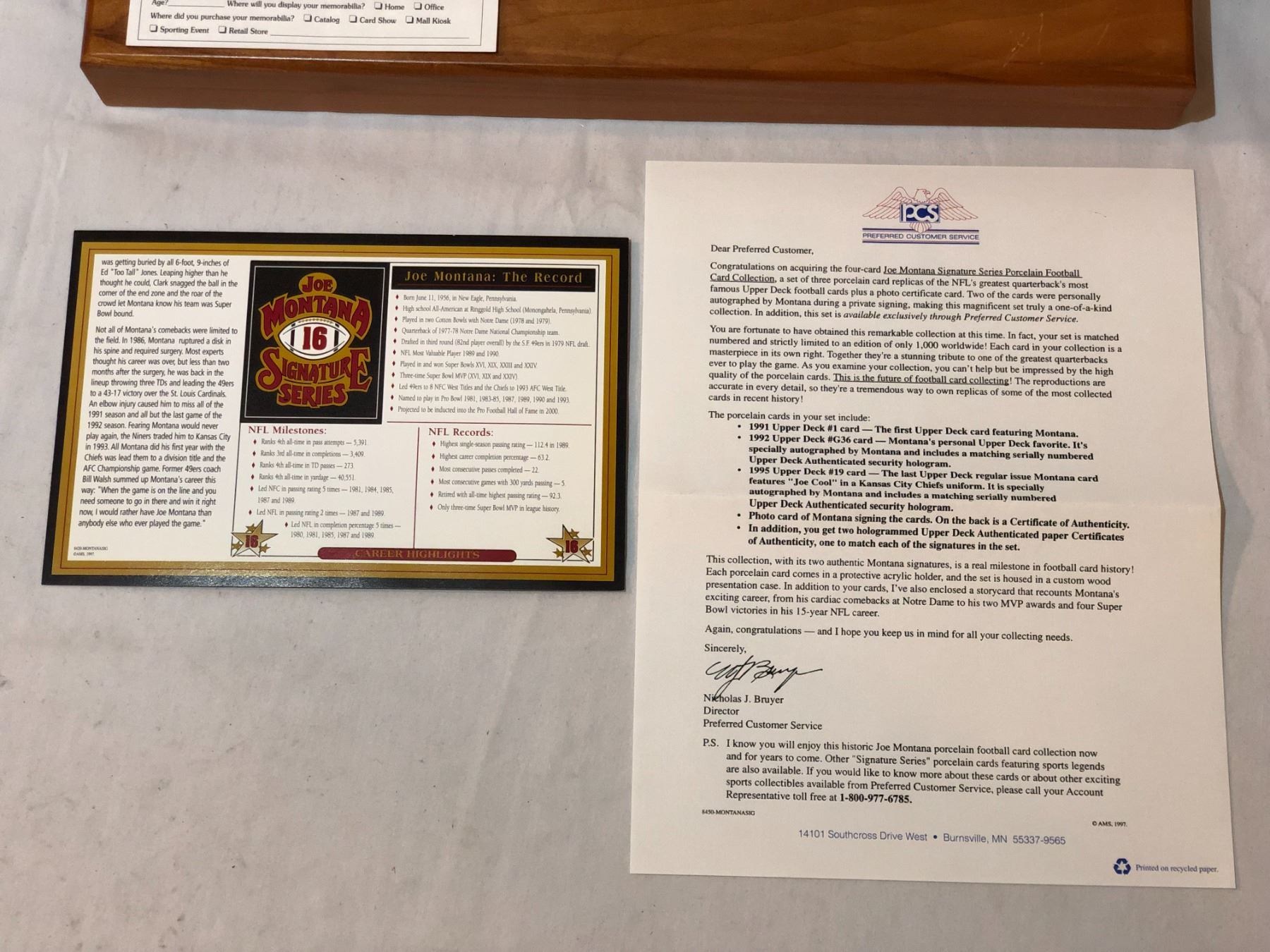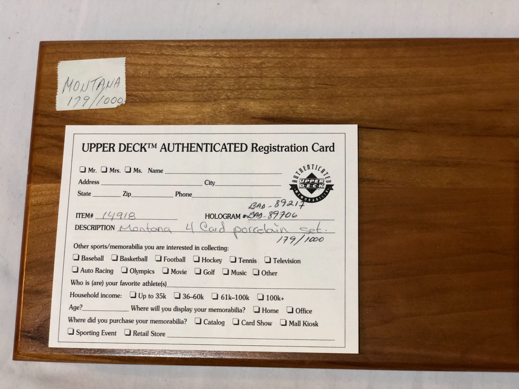 Joe Montana Signature Series limited edition #179/1000 porcelain collector's cards - comes w/ COA