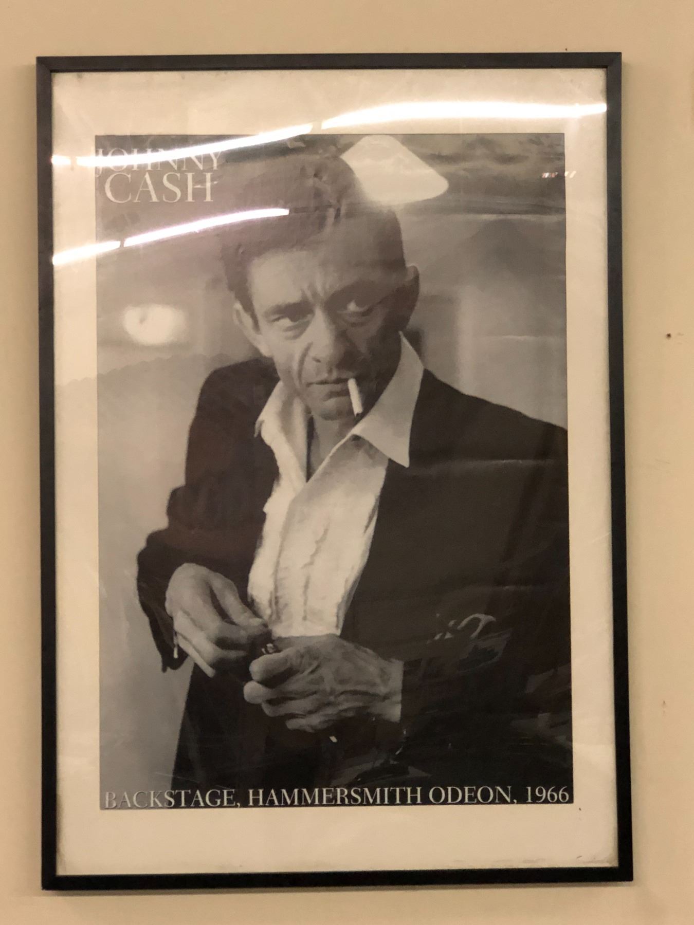 Johnny Cash backstage hammersmith odeon 1966 framed poster approx. 29in 40in