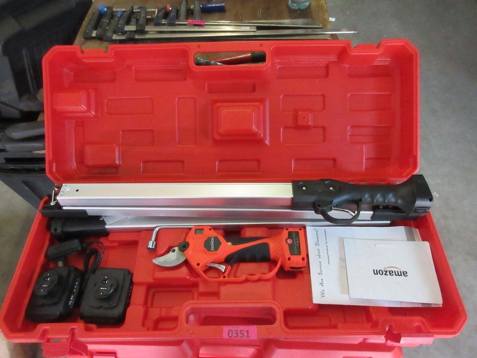 25V Professional Tree Branch Pruner with 7.5 Foot High Reach Extension Pole. 1.8 Inch Cutting Diameter, LED Display Screen. Lithium Battery Powered,