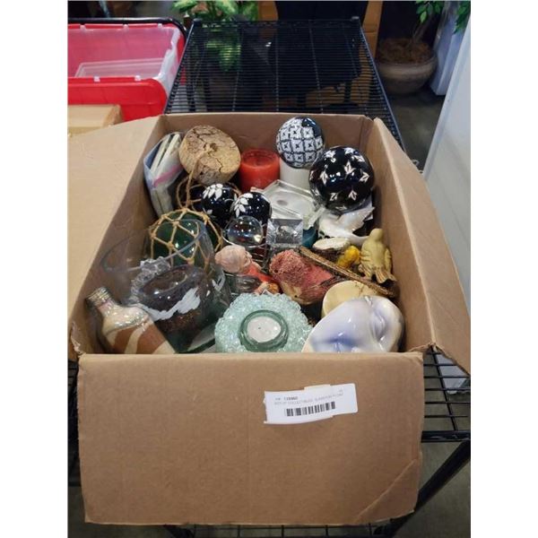BOX OF COLLECTIBLES, GLASS FISH FLOAT ETC