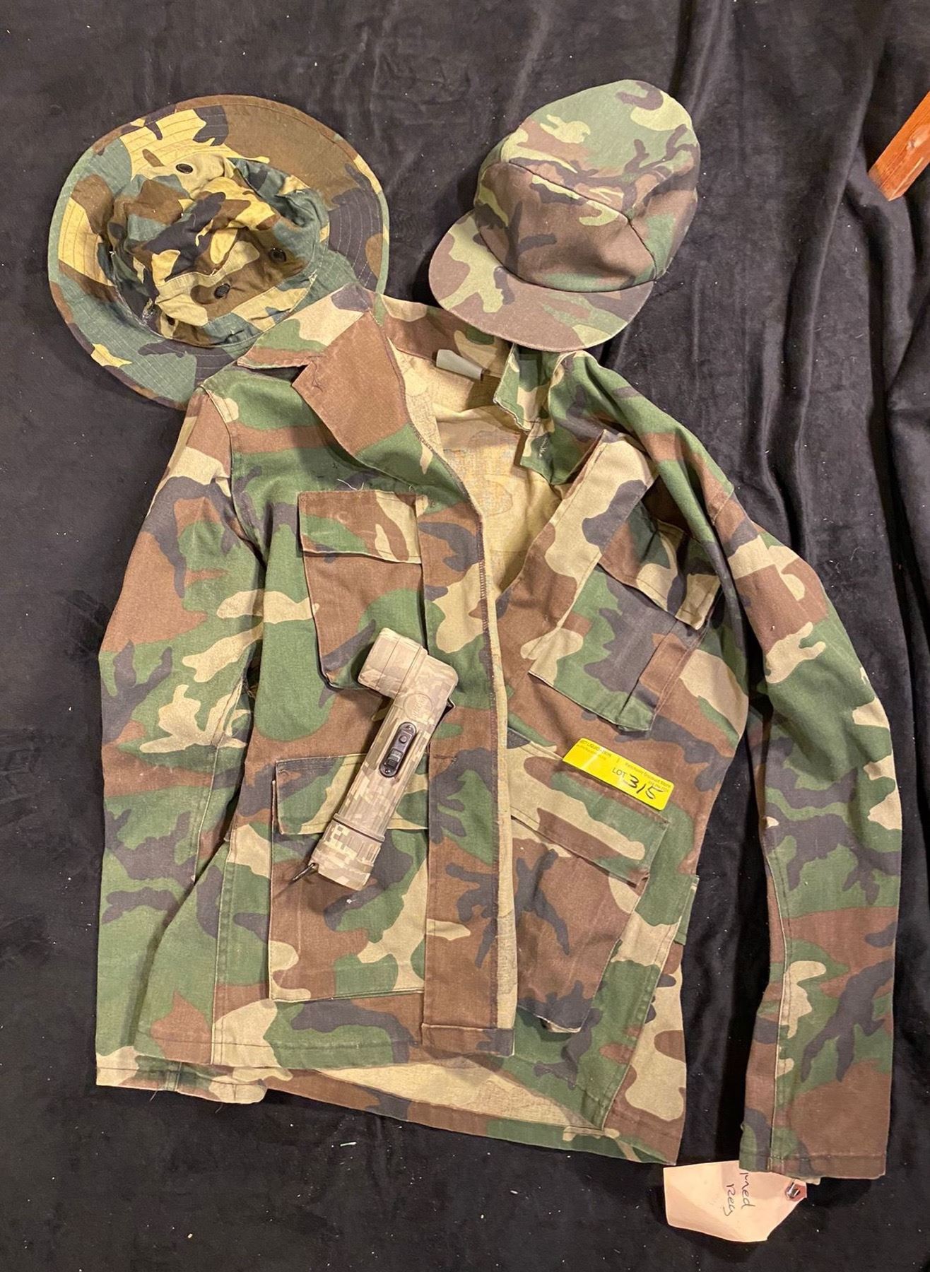Jungle hat type 2 boonie woodland camo jacket, flashlight and cap