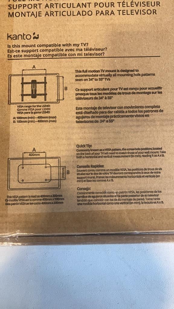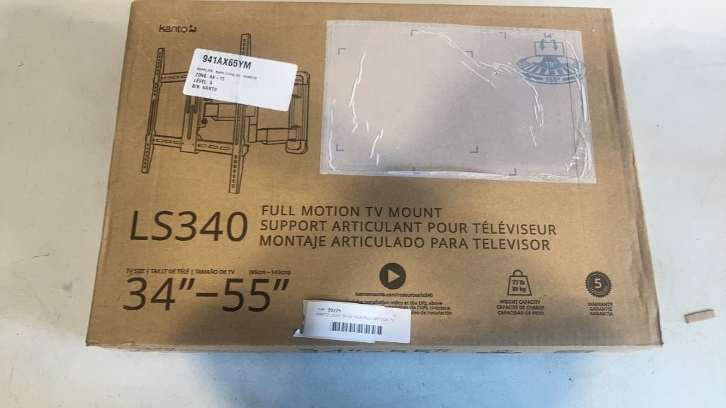 KANTO LS340 34-55 INCH FULL MOTION TV WALL MOUNT, RETAIL $99