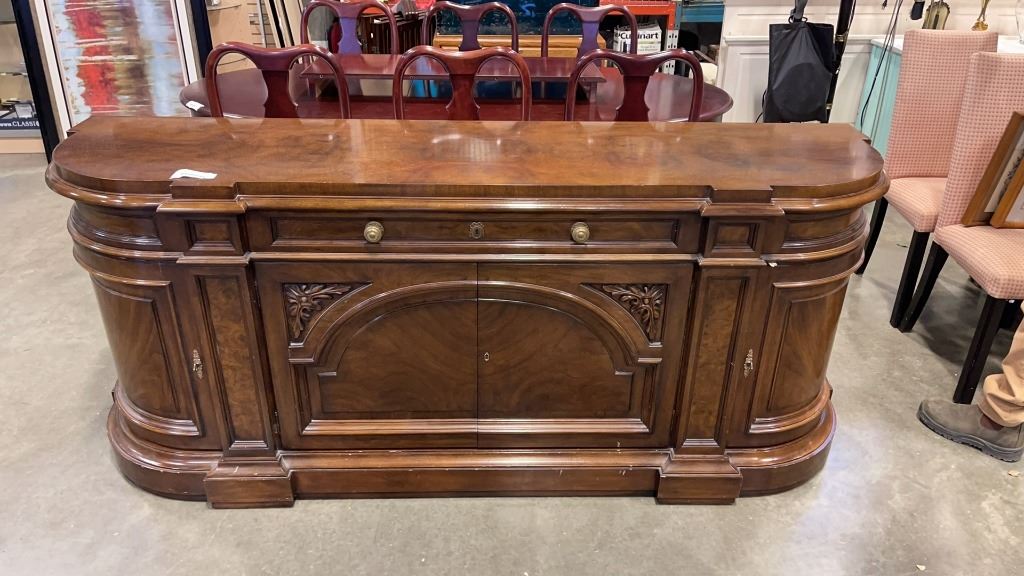 KARGES CARVED SERVER 6FT LONG WITH DRAWER, KEY AND HIDDEN DRAWERS
