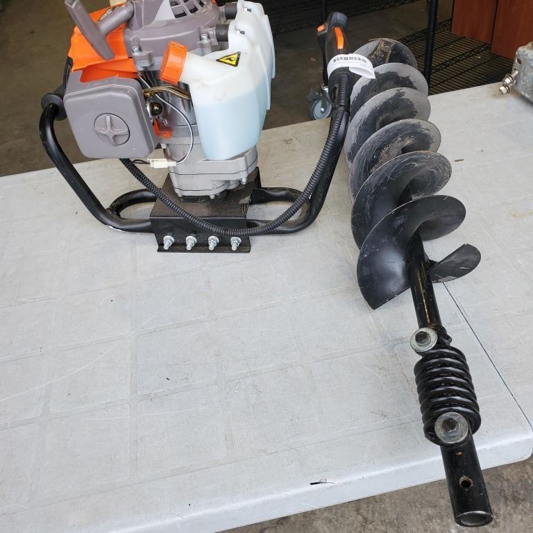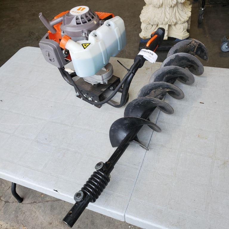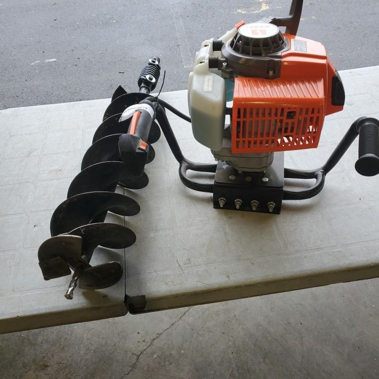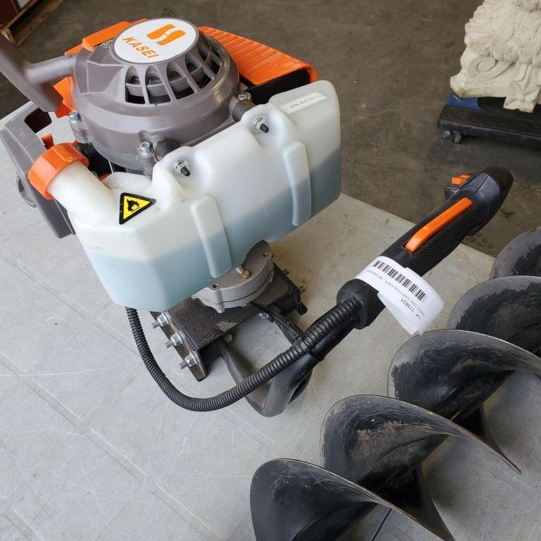 KASEI GAS EARTH AUGER - WORKING, NEEDS PIN TO CONNECT BIT - 6 INCH DIAMETER BIT