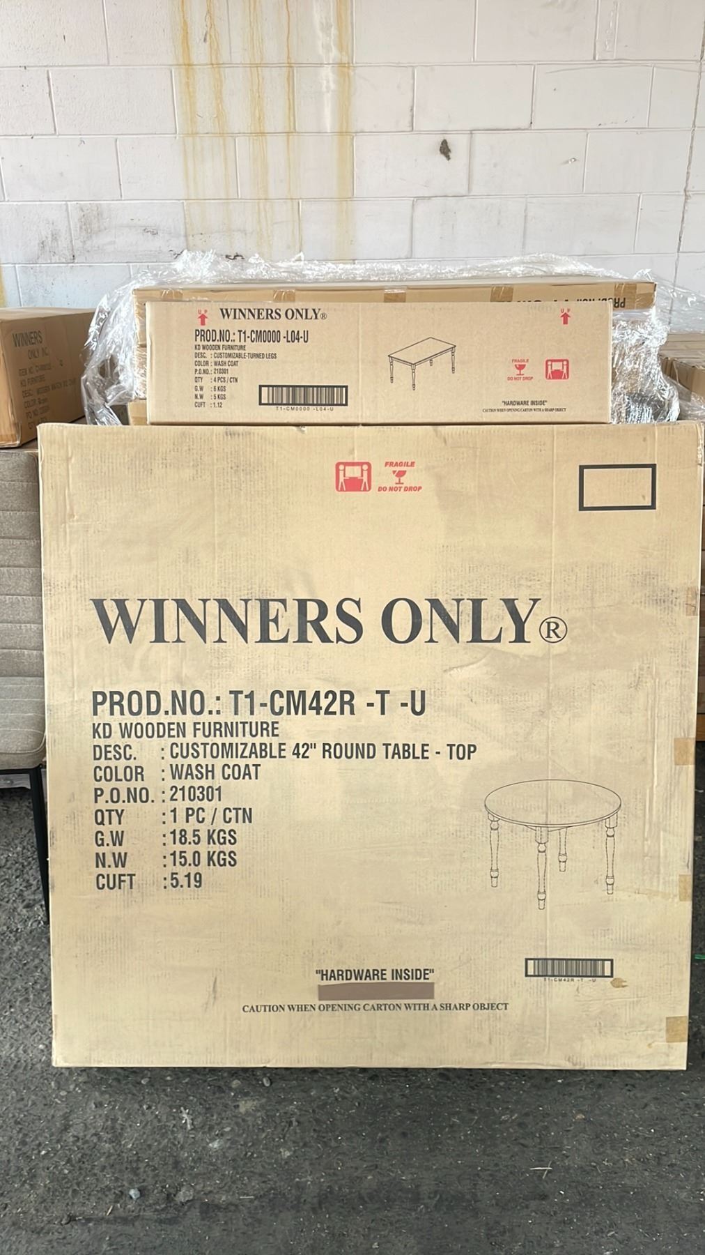 KD FURNITURE 42" ROUND WOODEN DINING TABLE *IN BOX* 2 BOXES TOTAL - TABLE TOP:T1-CM42R-T-U, LEGS: T1-CM0000-L04-U