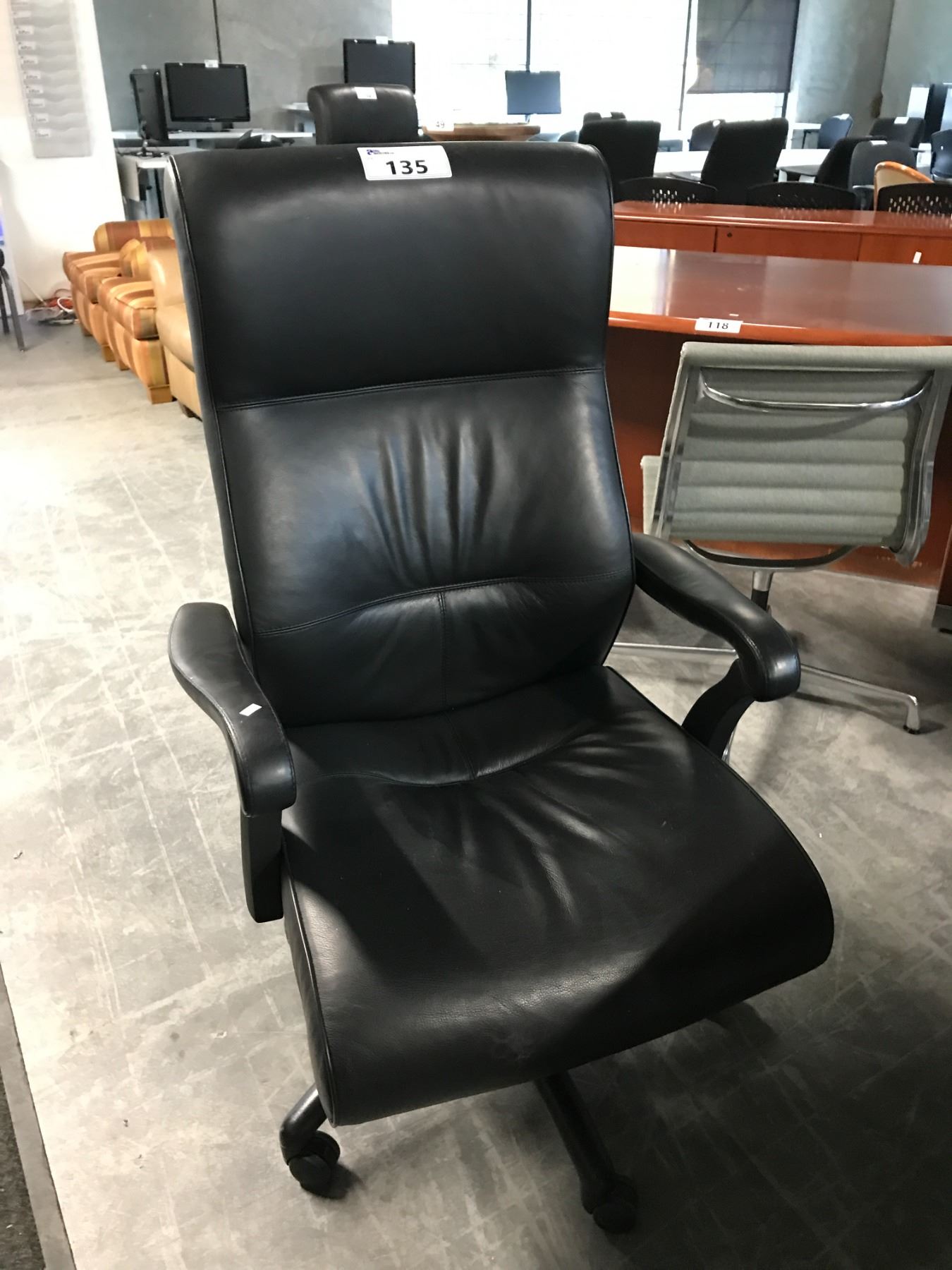 KEILHAUER DANFORTH BLACK LEATHER HIGH BACK EXECUTIVE CHAIR
