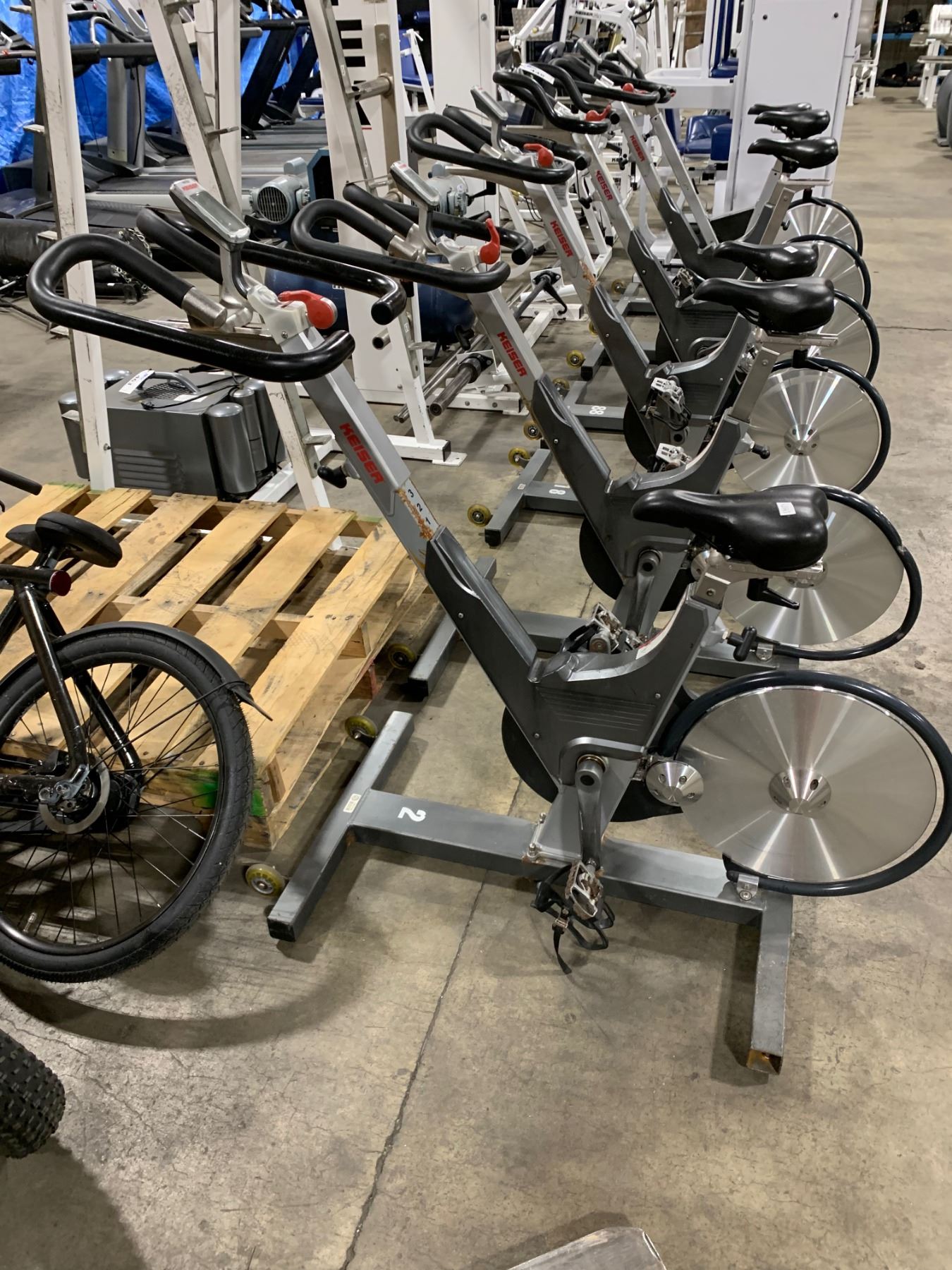 KEISER M3 COMMERCIAL SPIN BIKE WITH BLACK SEAT, RED TENSION HANDLE, & DIGITAL PEDOMETER