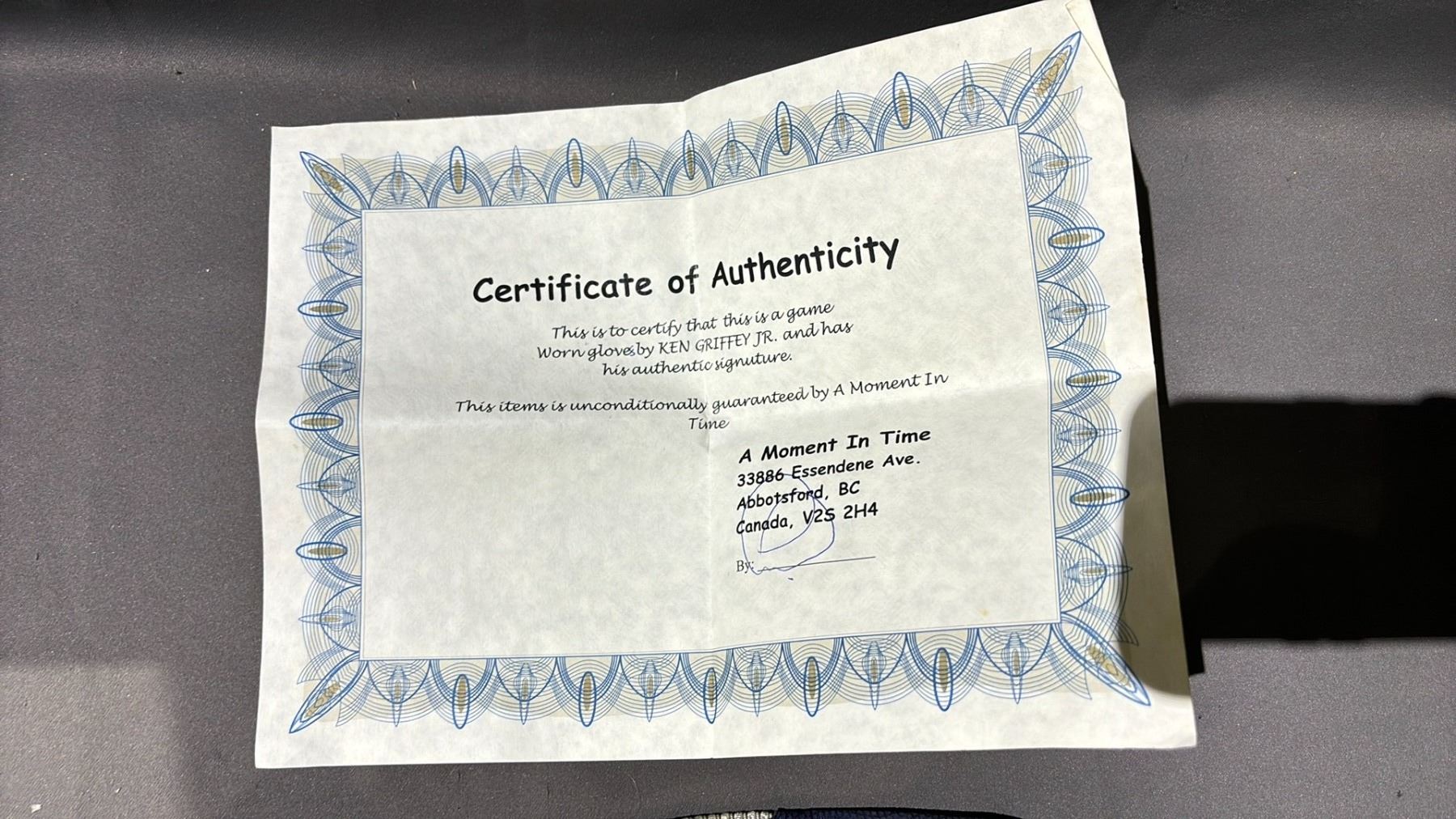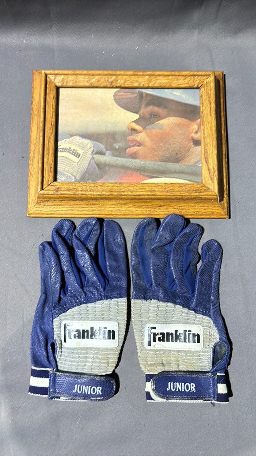 KEN GRIFFEY JR. AUTOGRAPHED GAME WORN GLOVES WITH CERT., A MOMENT IN TIME, ABBOTSFORD
