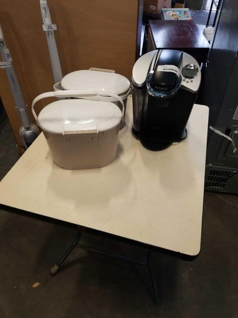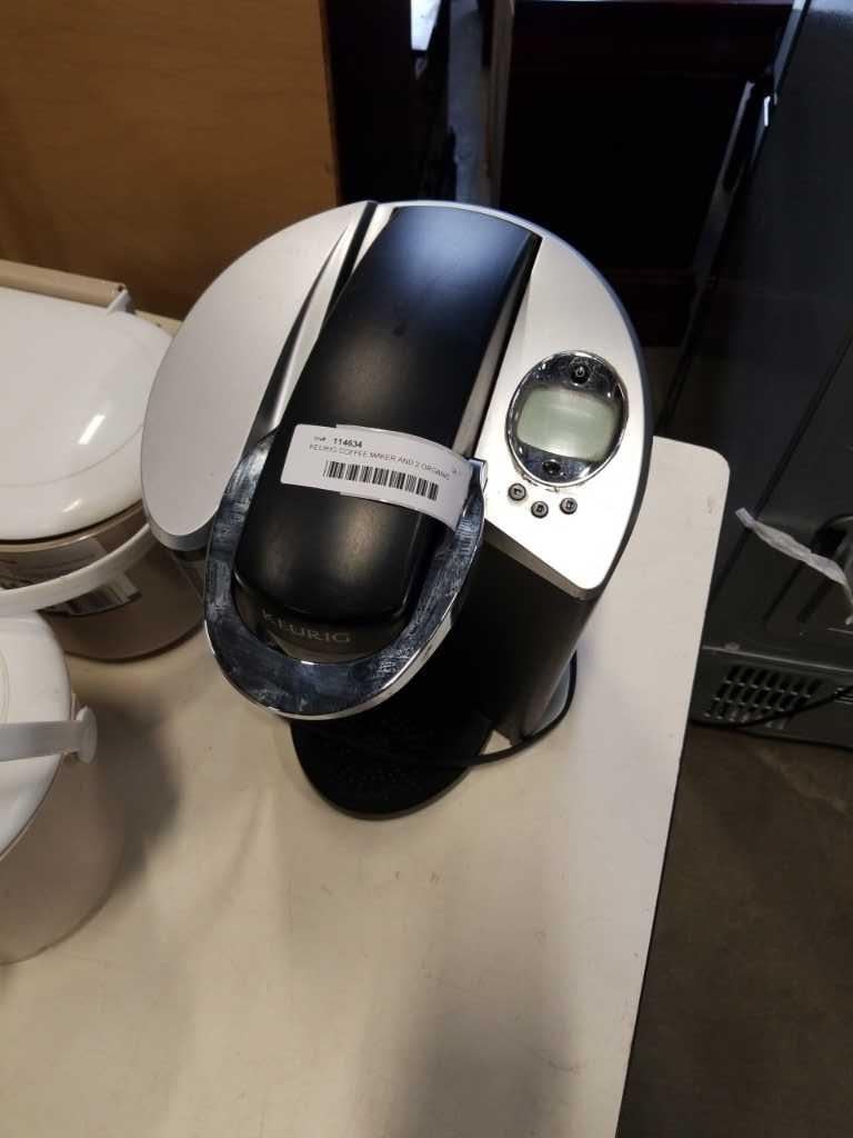 KEURIG COFFEE MAKER AND 2 ORGANIC BINS