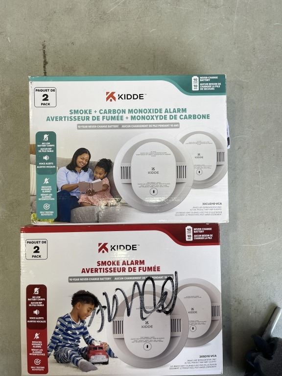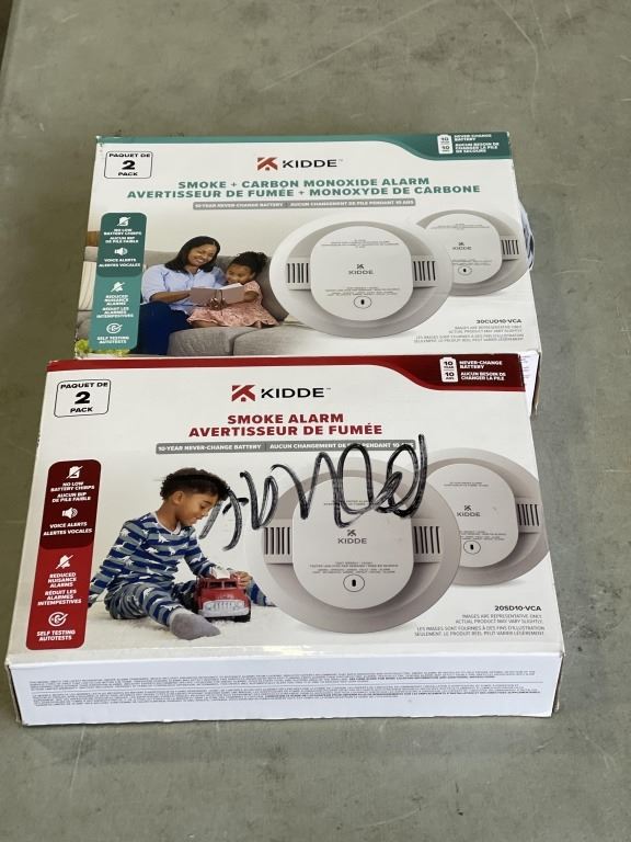 KIDDE SMOKE + CARBON MONOXIDE ALARM 2 PACK AND 2 PACK OF KIDDE SMOKE ALRAMS