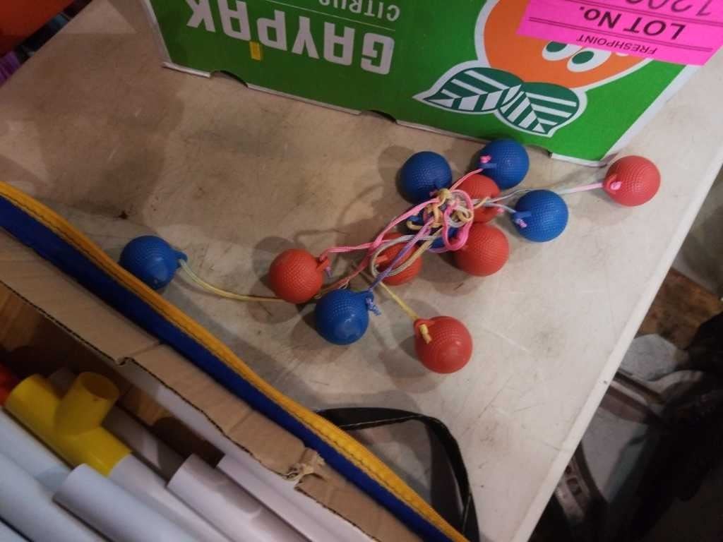 KIDS GAMES, BOLAS THROWING SET WITH TARGETS AND BOX OF TOY CARS