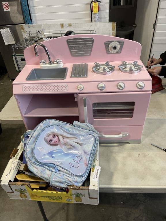 KIDS PLAY KITCHEN AND TRAY OF TOYS