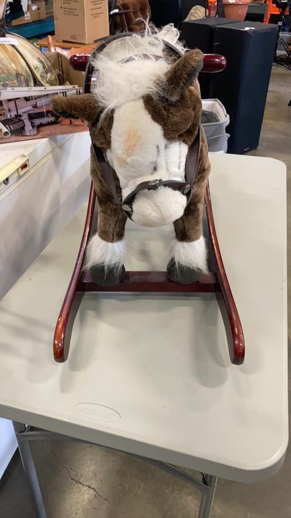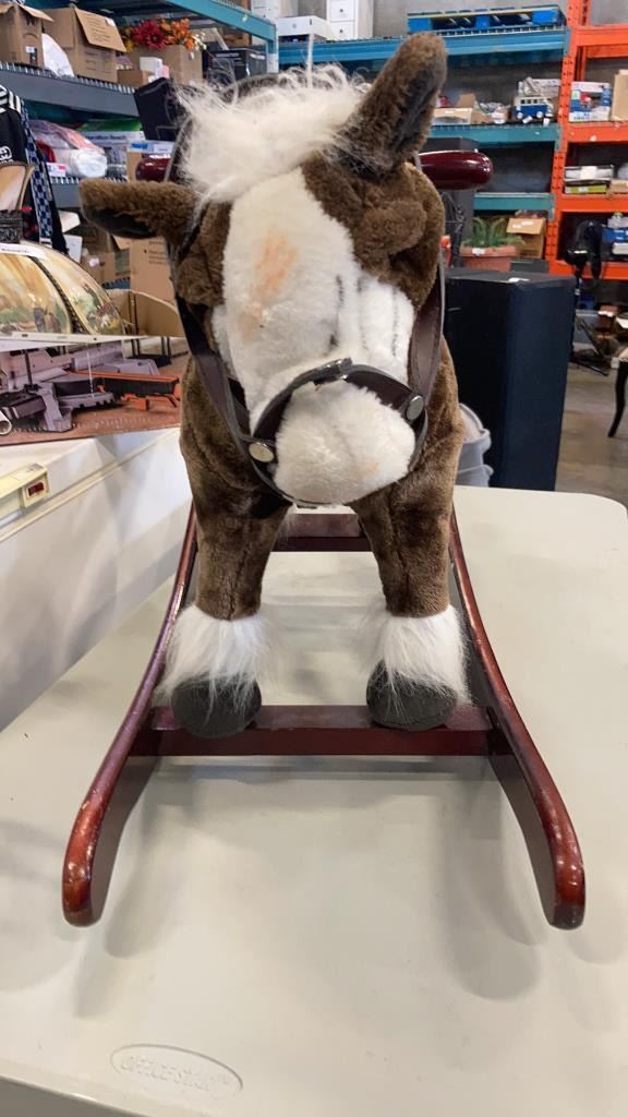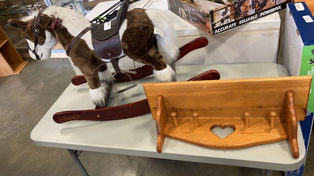 KIDS ROCKING HORSE AND WOOD SHELF