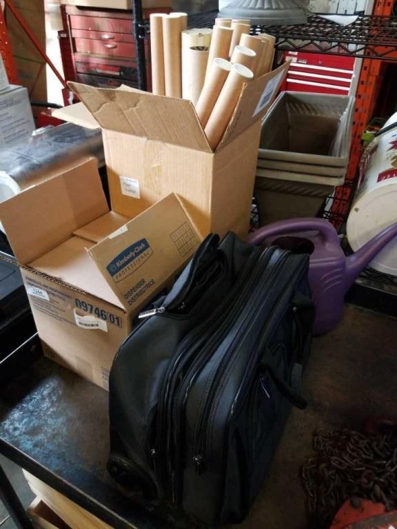 KIMBERLEY CLARK PAPER TOWEL ROLL DISPENSER, ROLLING BAG, MAILING TUBES AND WATERING CAN