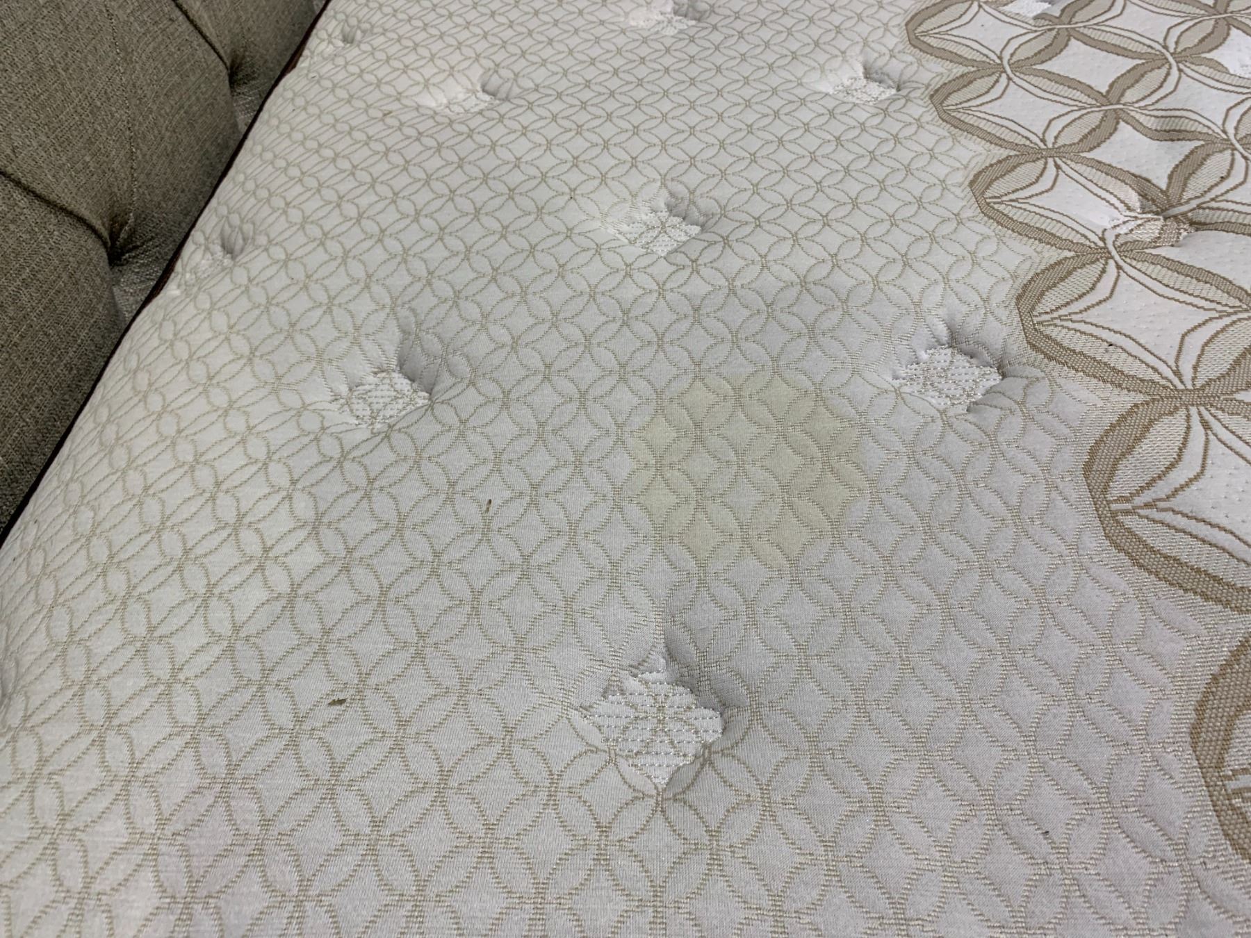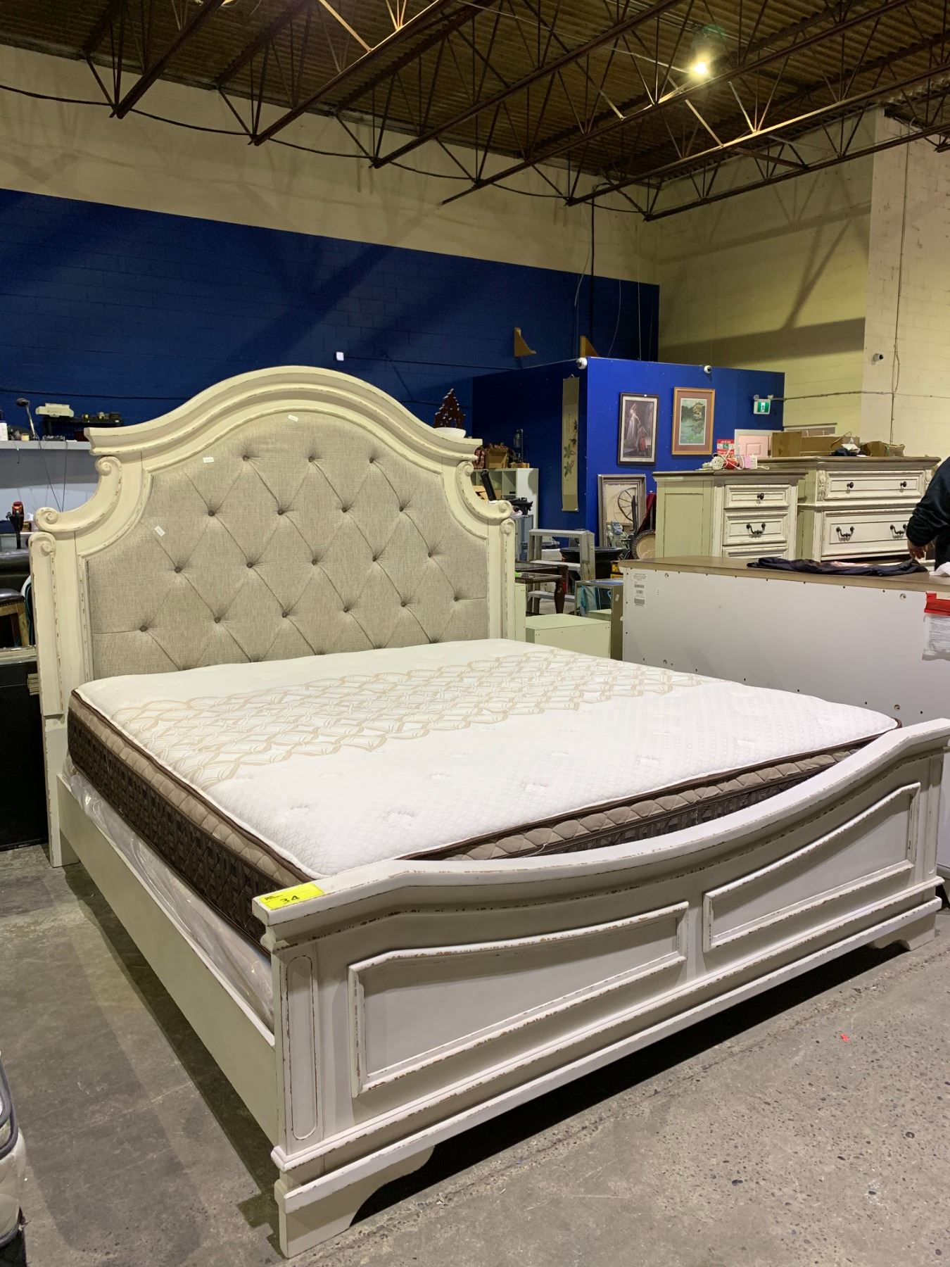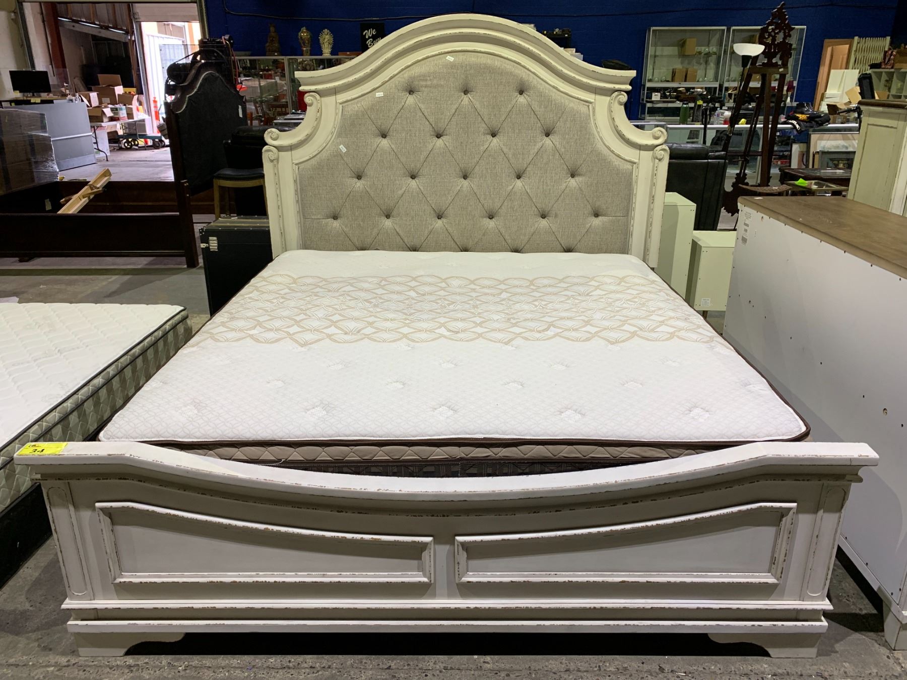 KING SIZE BED WITH MATTRESS & BOX SPRING (SMALL STAIN ON MATTRESS)