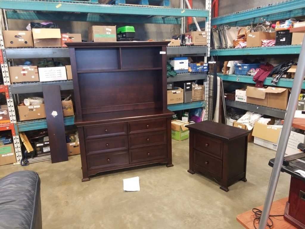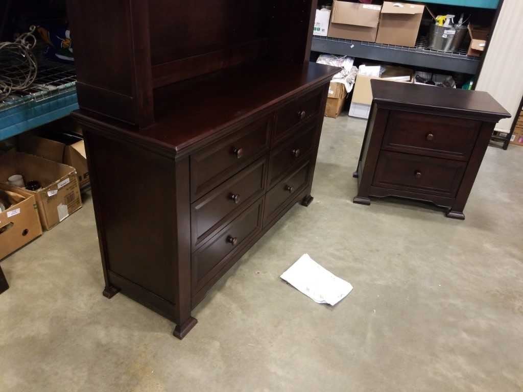 KINGSLEY MODERN 6 DRAWER DOUBLE DRESSER WITH MUNIRE FURNITURE HUTCH - 74 INCHES TALL AND MATCHING MUNIRE FURNITURE NIGHTSTAND