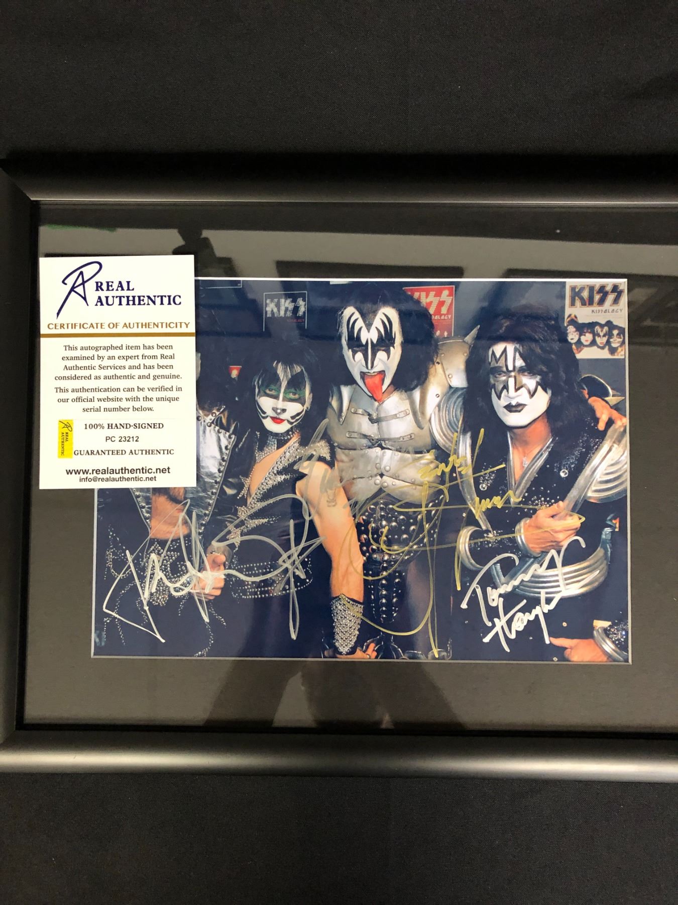 KISS BAND SIGNED AND CUSTOM FRAMED DISPLAY ( RA COA)