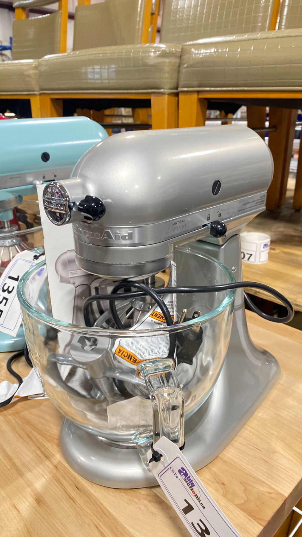 KITCHENAID ARTISAN 5 QUART 4.7L ELECTRIC COUNTERTOP TILT-HEAD STAND MIXER WITH BOWL & ATTACHMENTS *INCLUDES 3 MIXING PADDLES & GLASS BOWL * *COLOR SILVER*