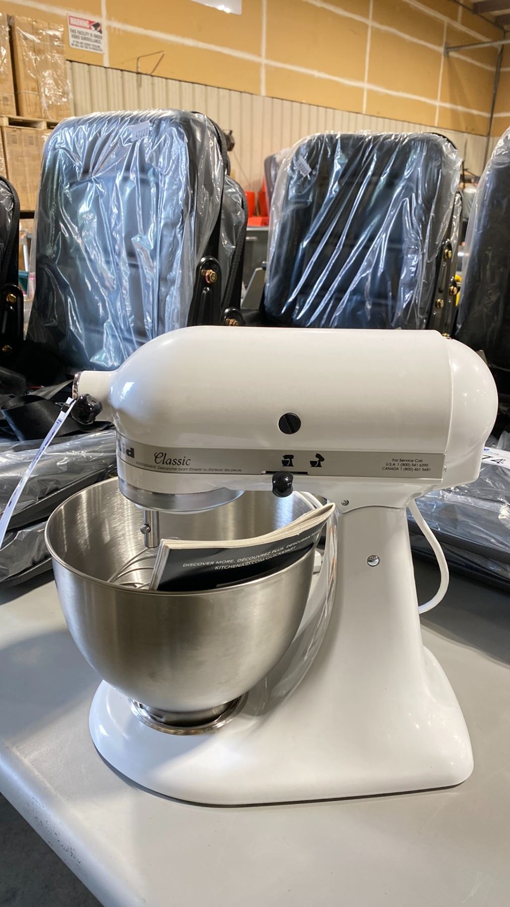 KITCHENAID CLASSIC 4.5 QUART 4.26L ELECTRIC COUNTERTOP TILT-HEAD STAND MIXER WITH METAL BOWL & ATTACHMENTS *INCLUDES 2 MIXING PADDLES, & BOWL *COLOR WHITE*