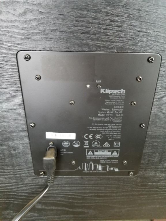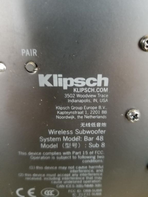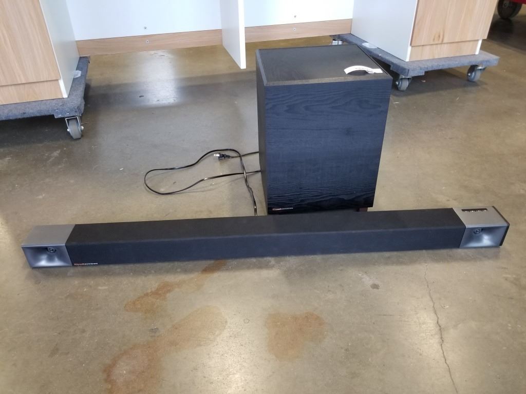 KLIPSCH BAR48 440 WATT SOUNDBAR AND 8 INCH WIRELESS SUB - WORKING