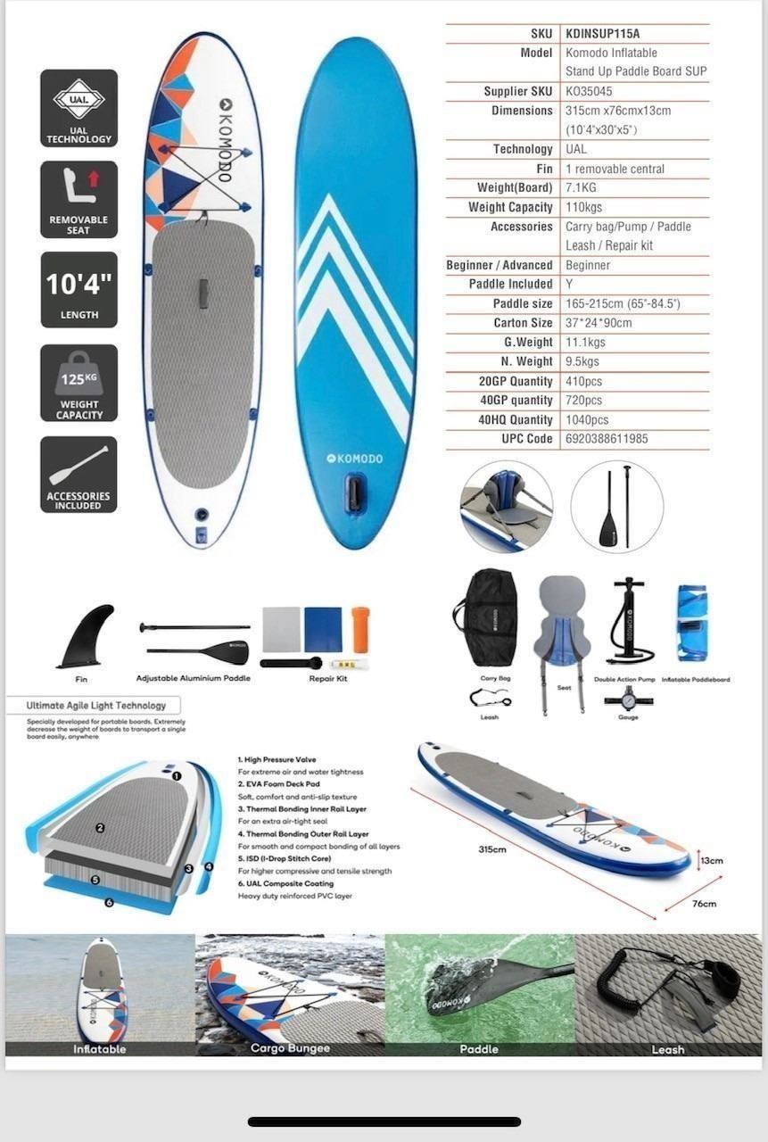 KOMODO INFLATABLE STAND UP PADDLE BOARD *NEW IN BOX*