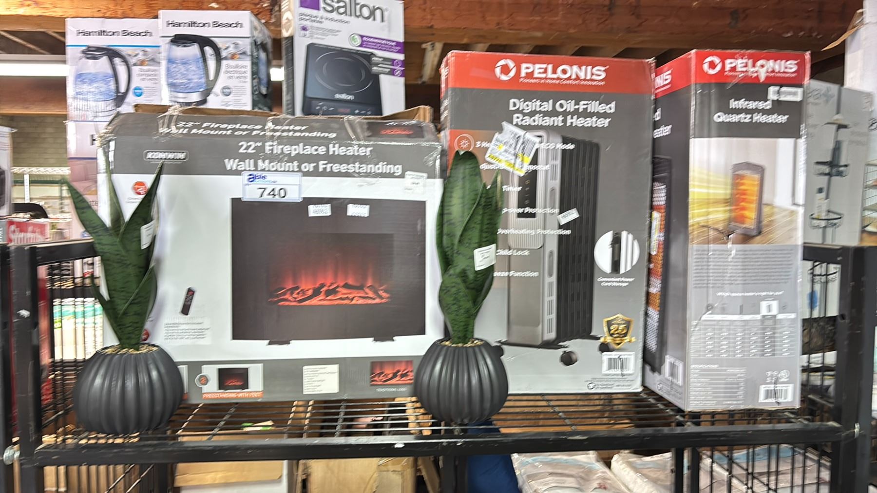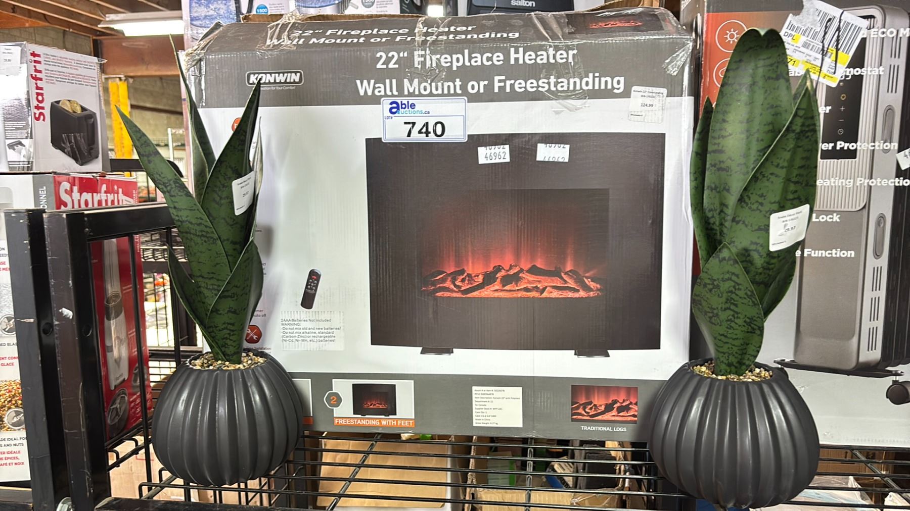 KONWIN 22" ELECTRIC FIREPLACE, PELONIS DIGITAL OIL FILLED HEATER, PELONIS INFRARED QUARTZ HEATER & 2 FAUX SNAKE PLANTS