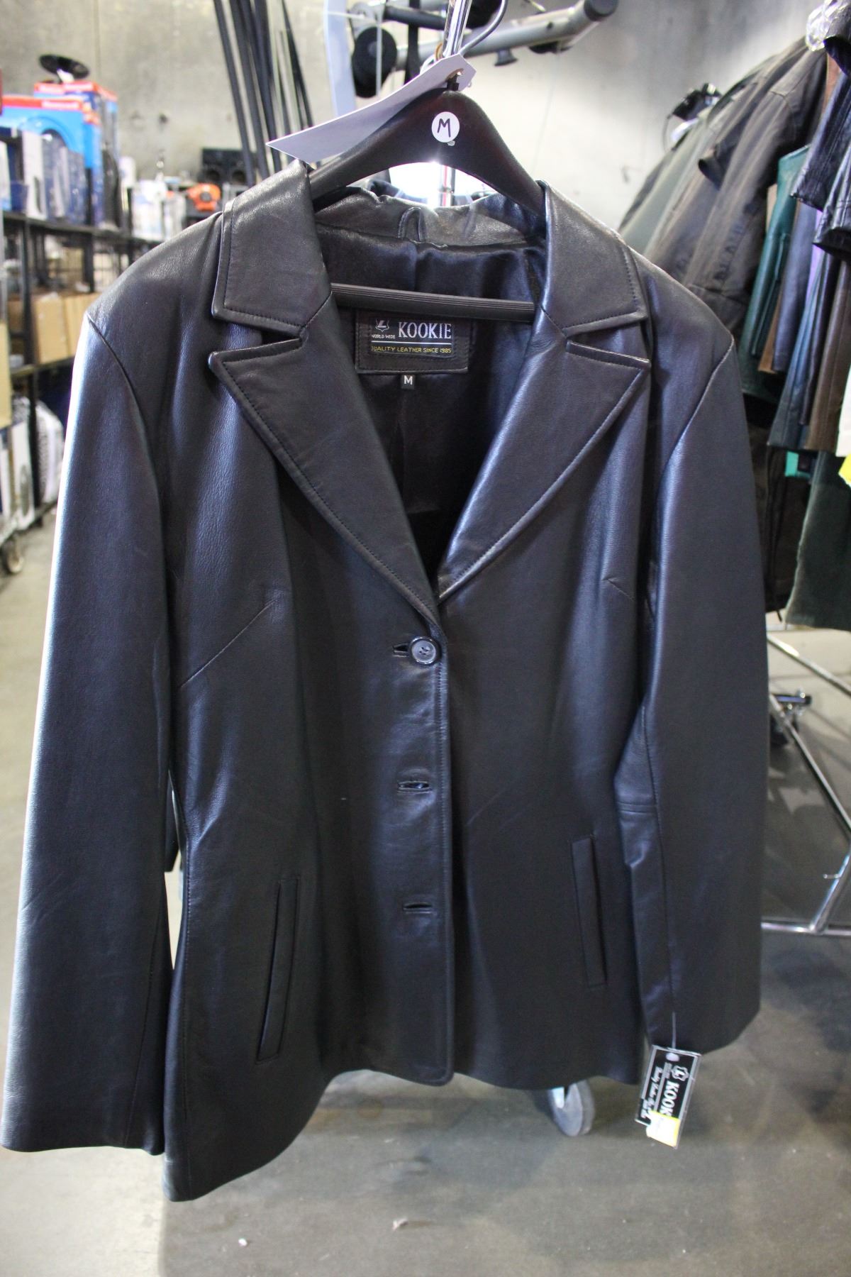 KOOKIE LEATHER JACKET, SIZE M (RETAIL VALUE $630)