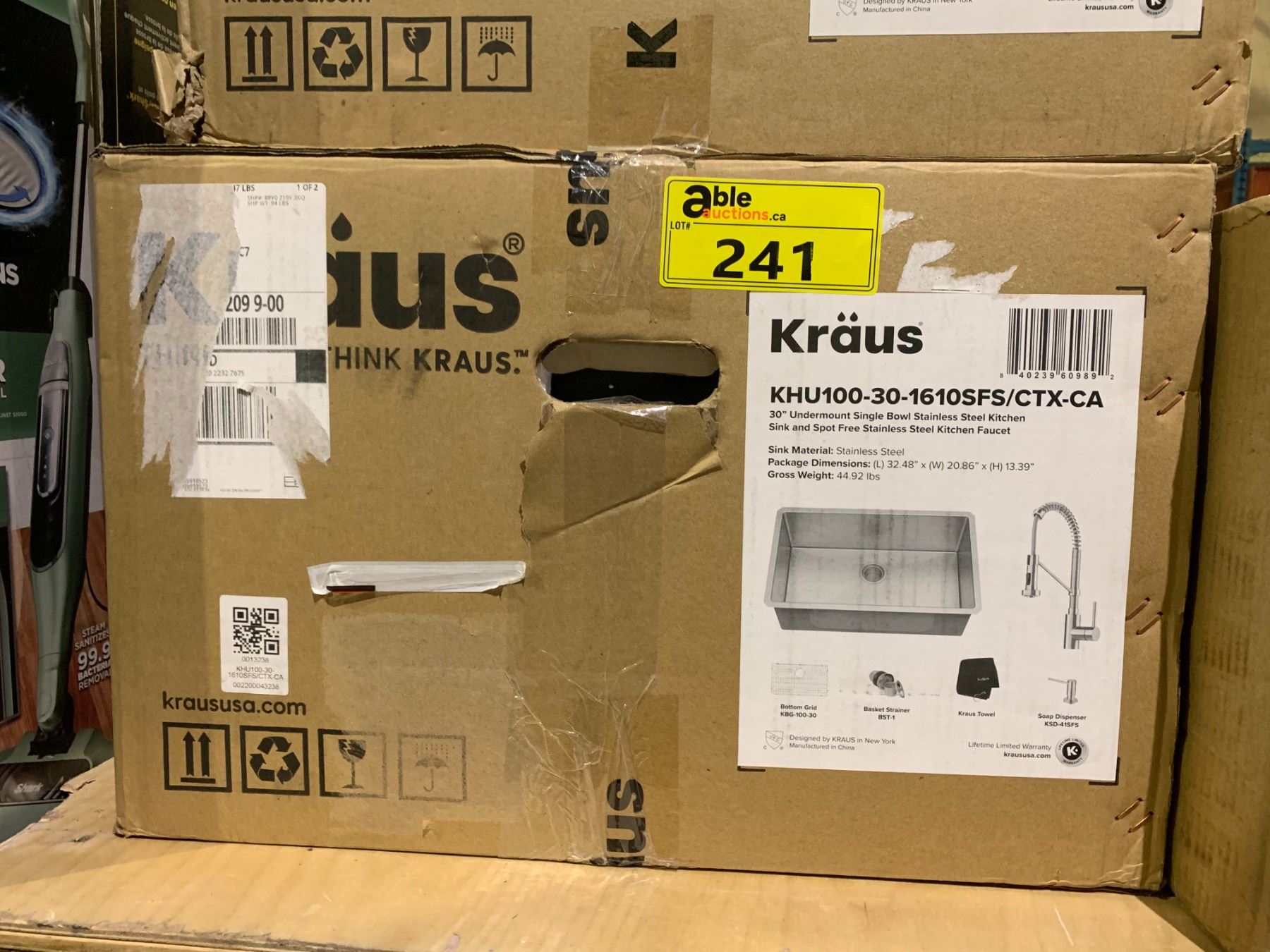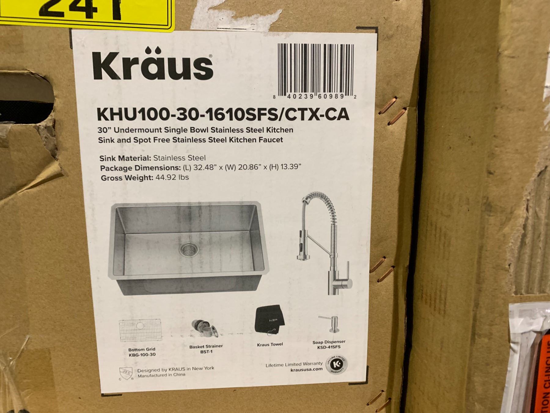 KRAUS KHU100-30-1610SFS/CTX-CA 30  UNDERMOUNT SINGLE BOWL STAINLESS STEEL KITCHEN SINK & SPOT FREE