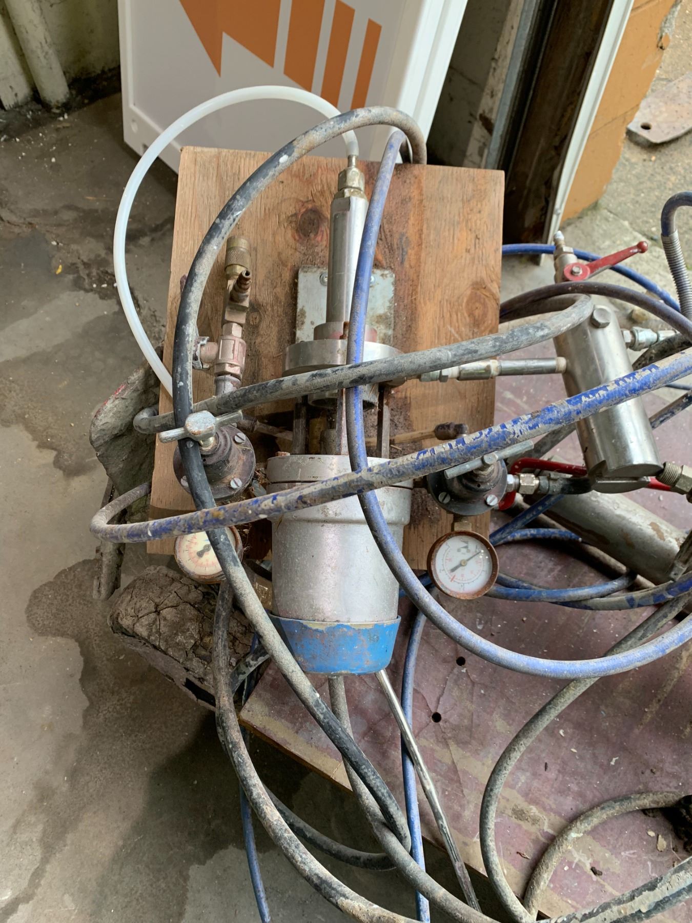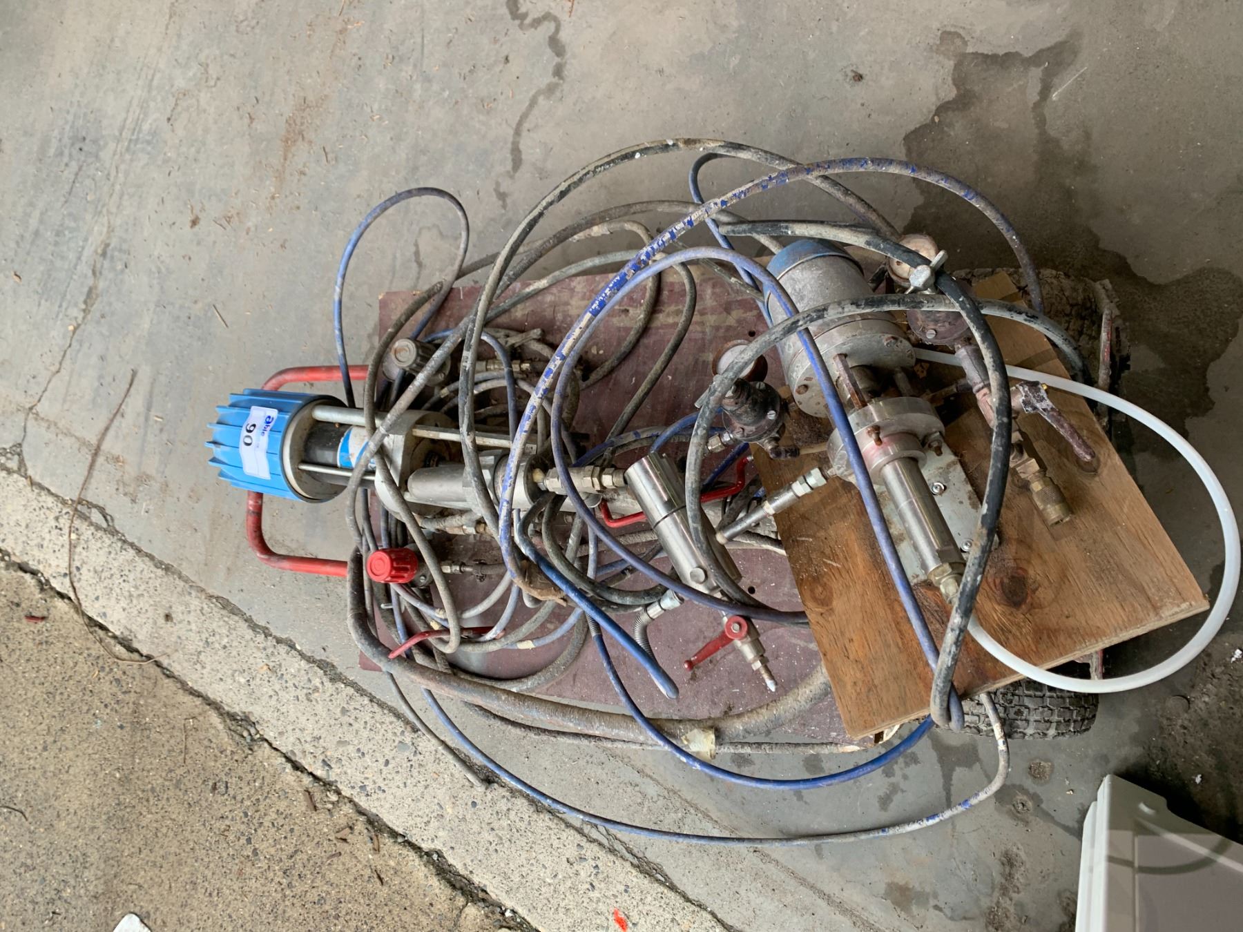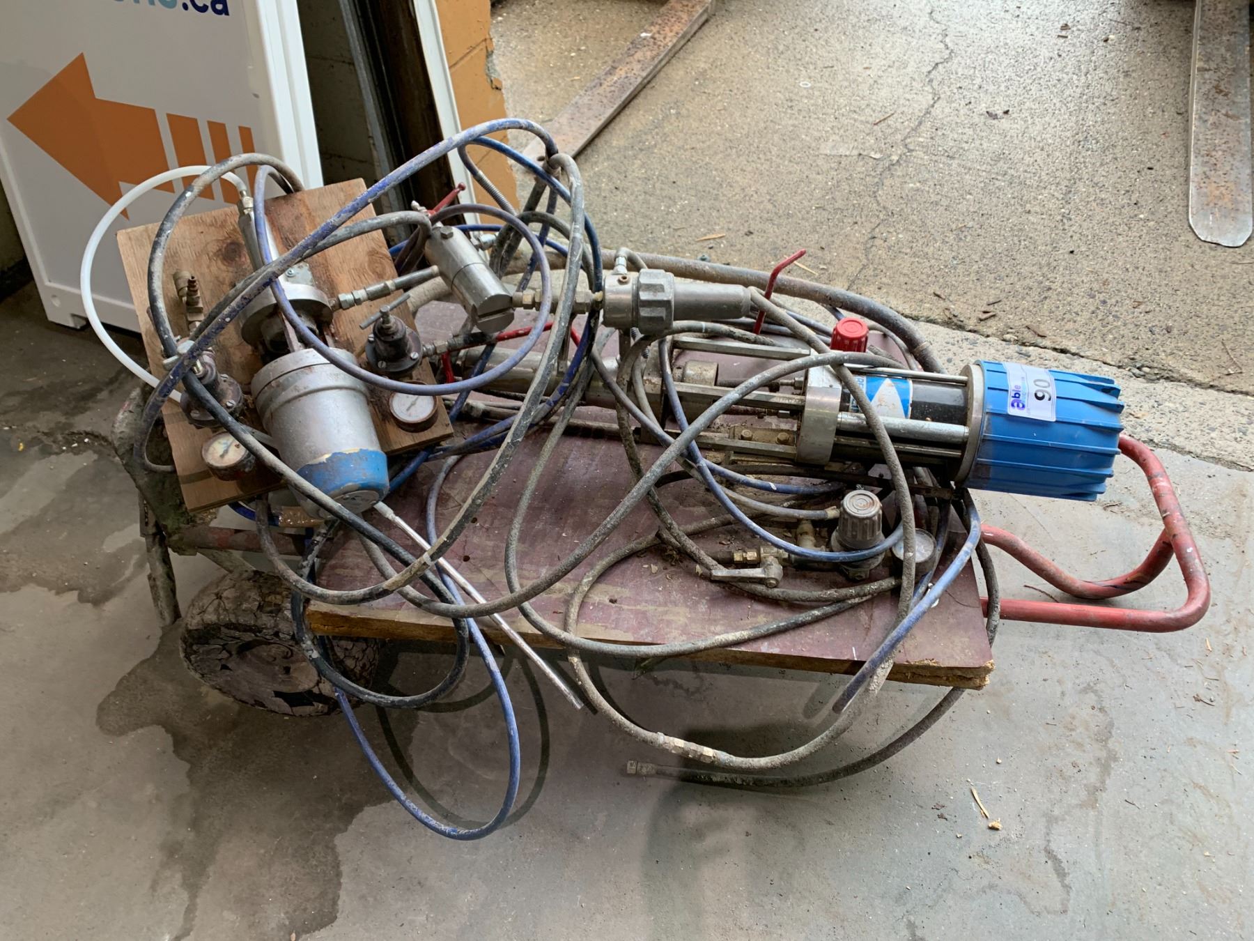 KREMLIN PUMP WITH HOSES & GAUGES MOUNTED ON 2 WHEEL DOLLY & KREMLIN PUMP WITH HOSES & GAUGES MOUNTED ON BOARD
