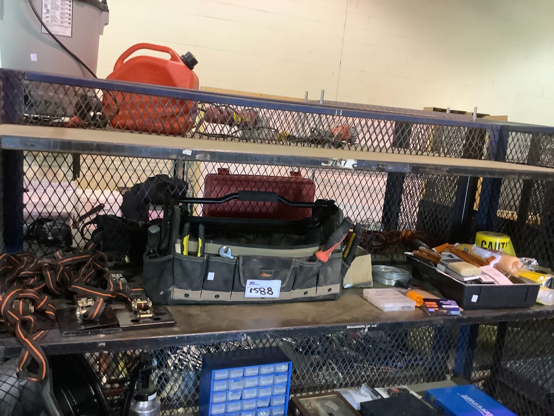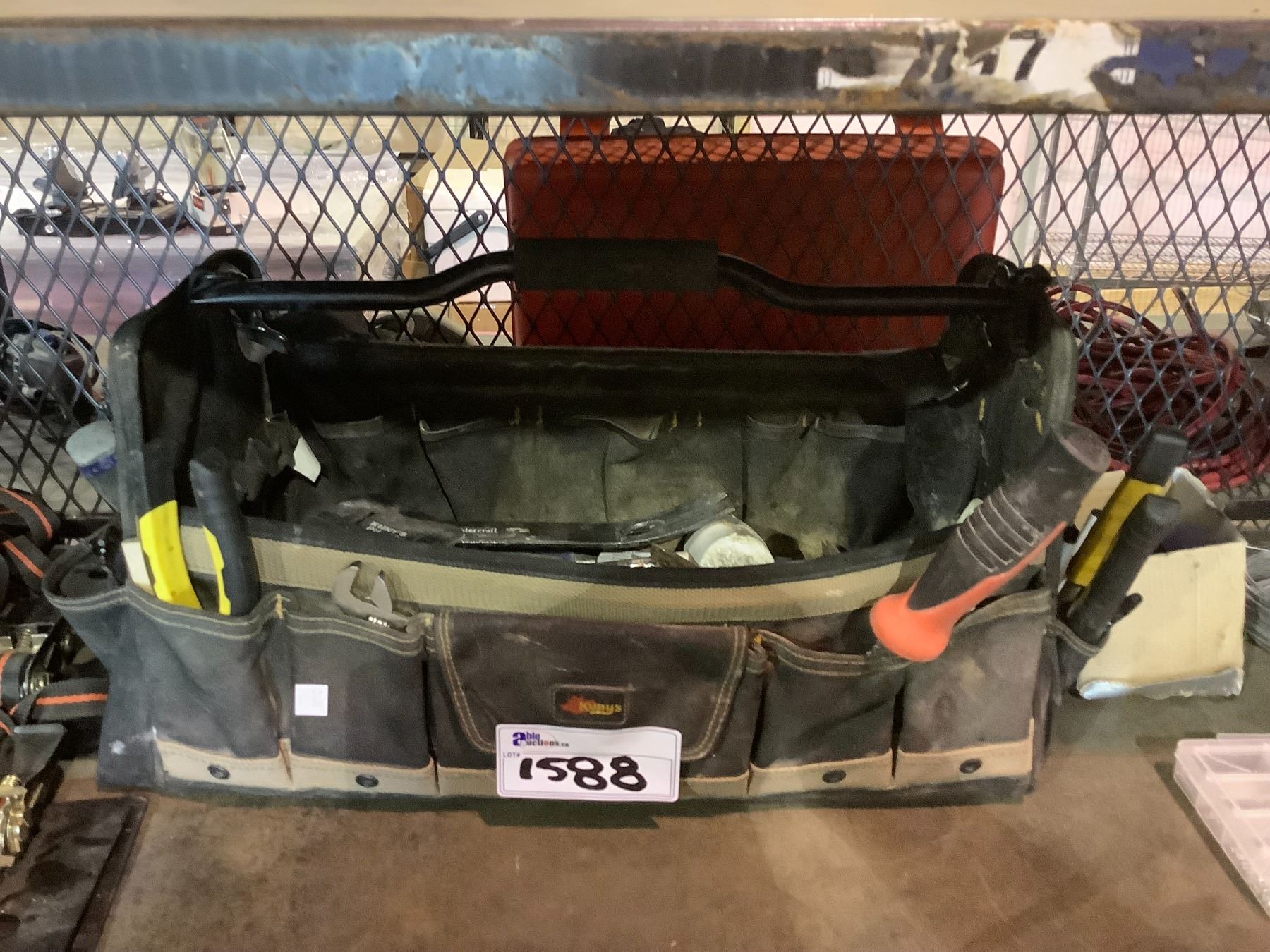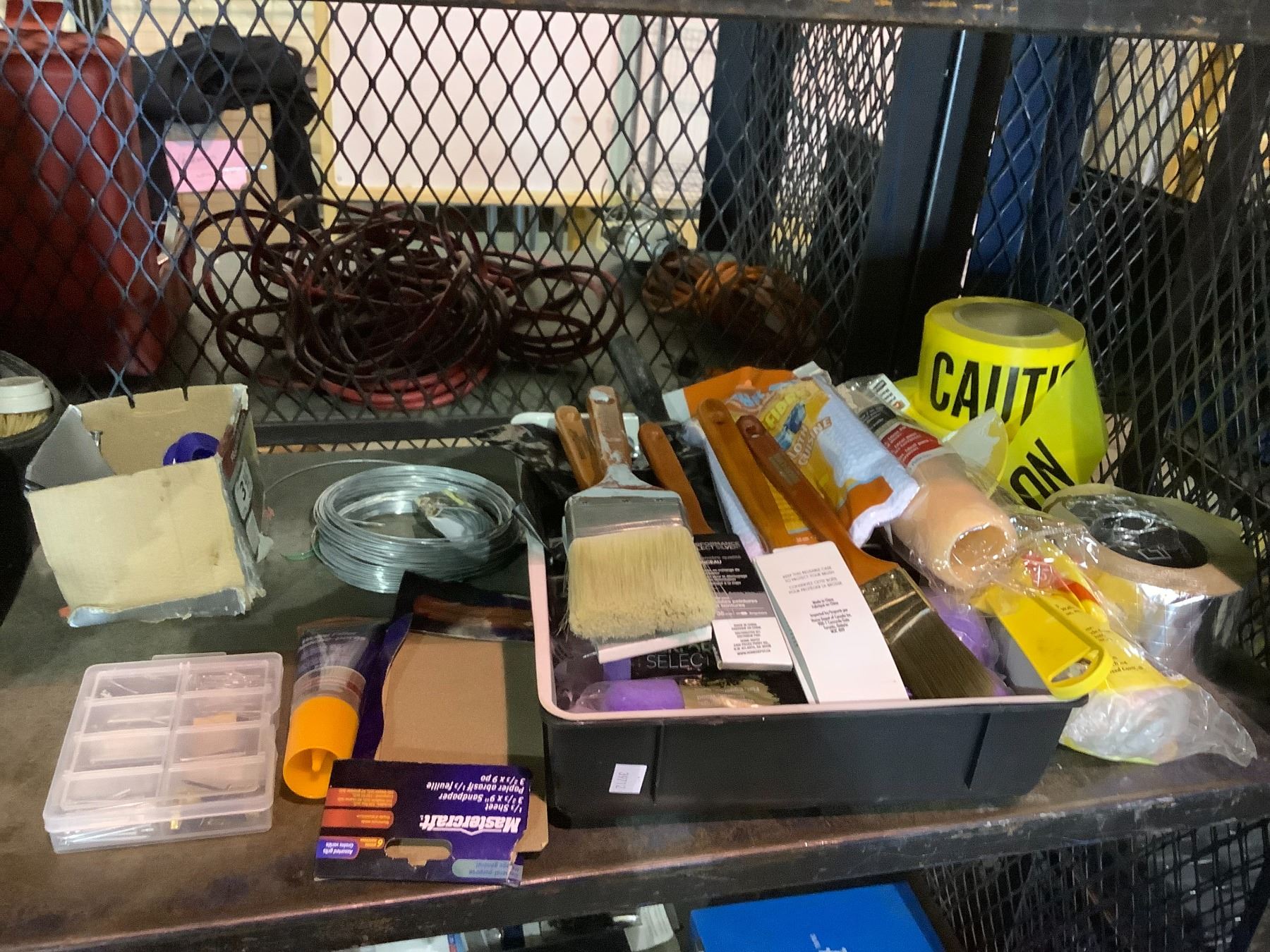 KUNYS TOOL BAG, ASSORTED TOOLS, STRAPS, PAINTING SUPPLIES, AND MORE