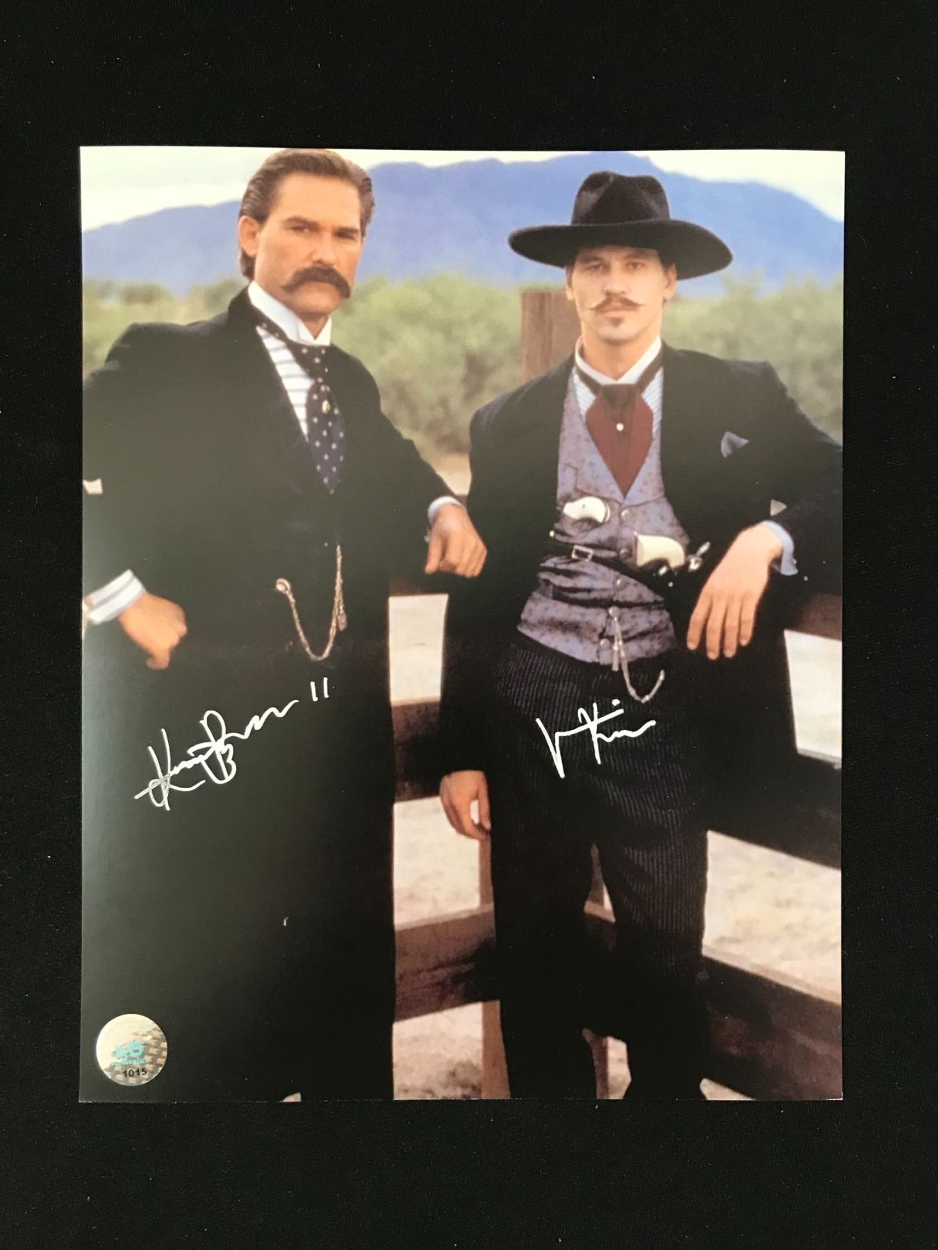 KURT RUSSEL & VAL KILMER SIGNED "TOMBSTONE" 8X10 PHOTO (KB AUTHENTICS COA)