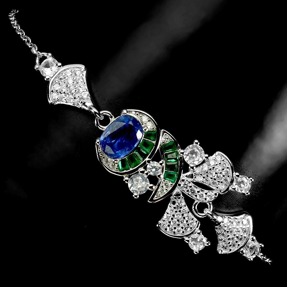 KYANITE BRACELET IN 14K WHITE PLATED GOLD OVER 925 STERLING SILVER - 7.5 INCHES APPRAISED REPLACEMENT VALUE