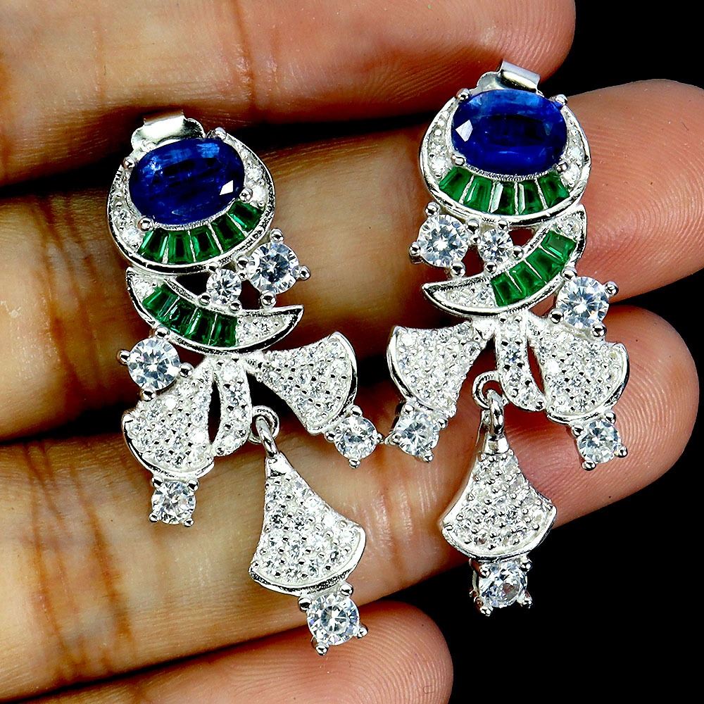KYANITE EARRINGS IN 14K WHITE PLATED GOLD OVER 925 STERLING SILVER - APPRAISED REPLACEMENT VALUE