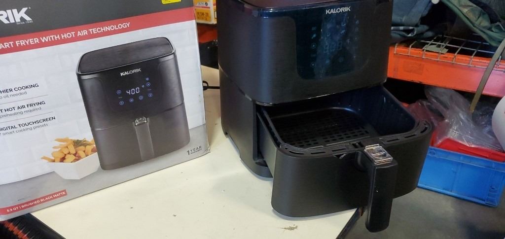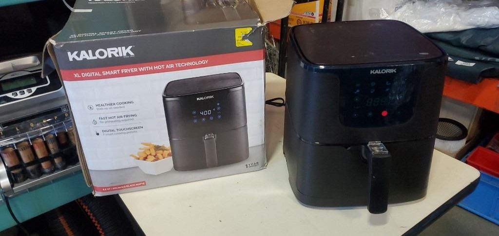Kalorik XL digital smart fryer 5.3 qt brushed black matte shipping damage tested and working