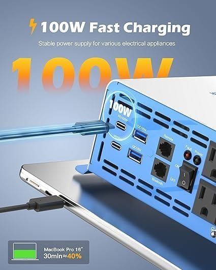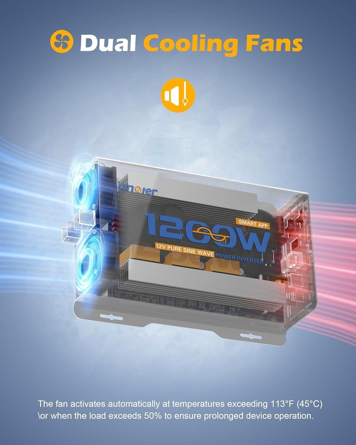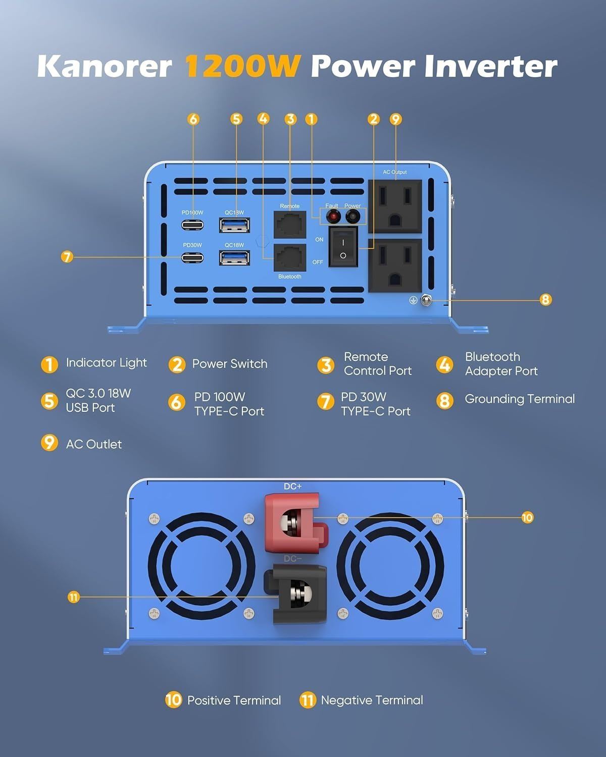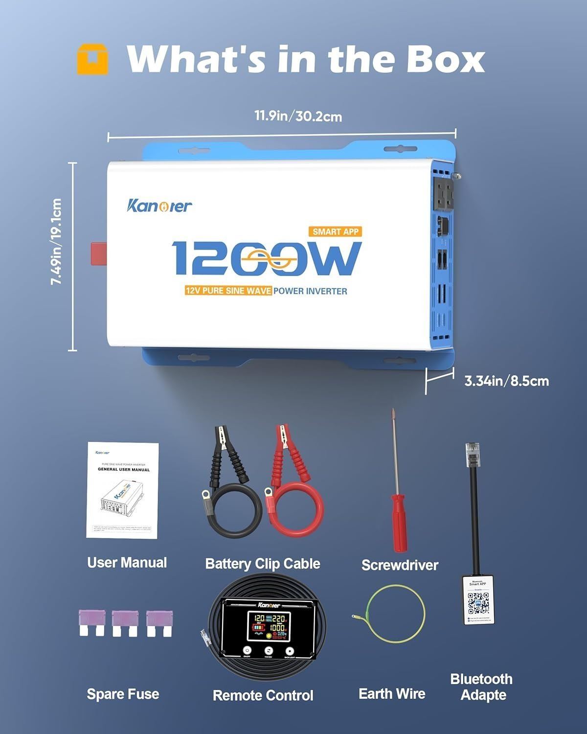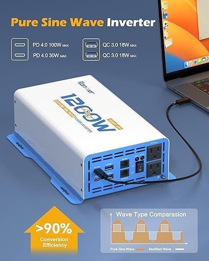 - 1200W Pure Sine Wave Power Inverter 12V DC to 110V 120V AC Converter for Home RV Off Grid Truck Solar System Inverters