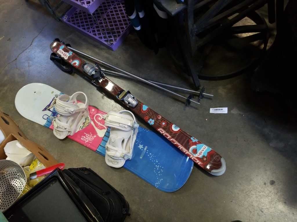 Kids snow board and skis