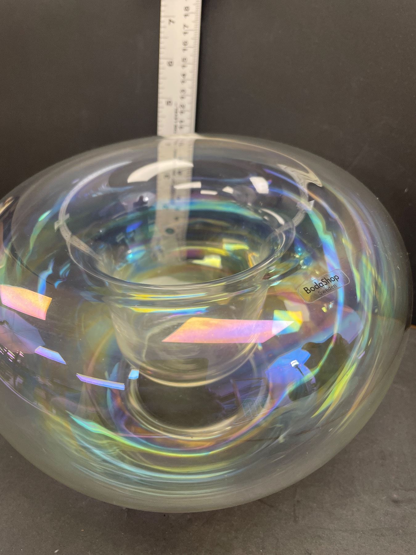 Kosta Boda Sweden Art Deco Clear Iridescent Candle Holder Approx 8" No Chips or Cracks