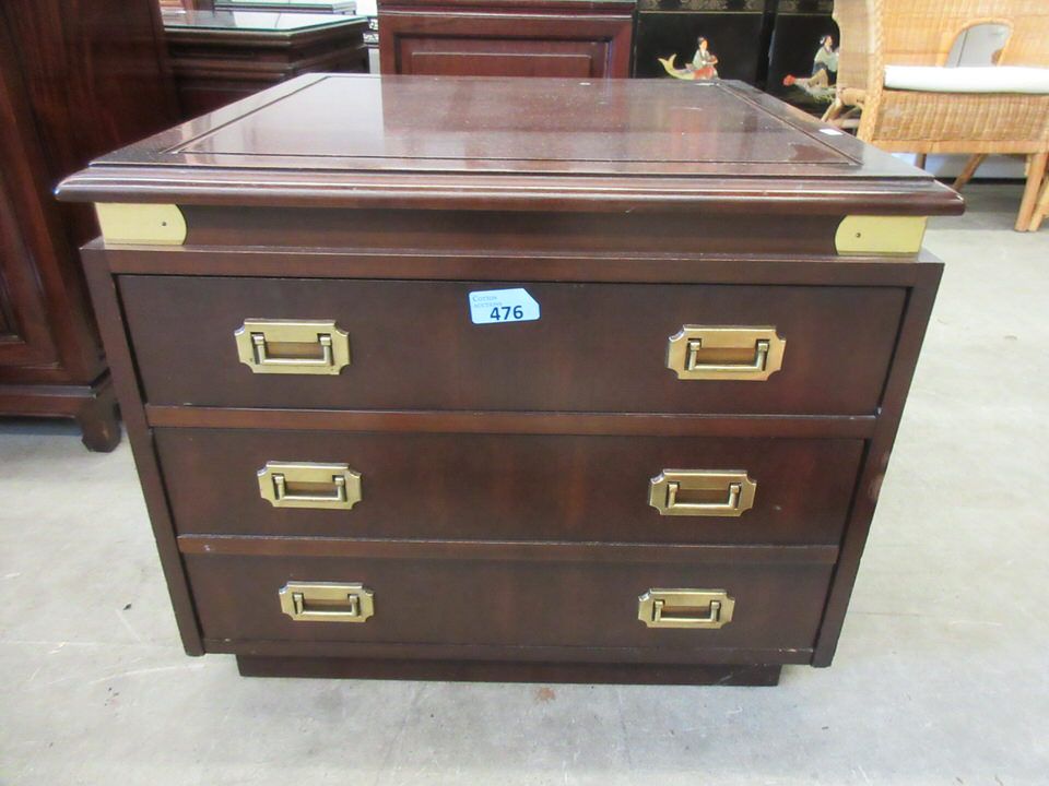 25" x 25" x 21" tall. Brass drawer pulls. Companion piece to lot #859.